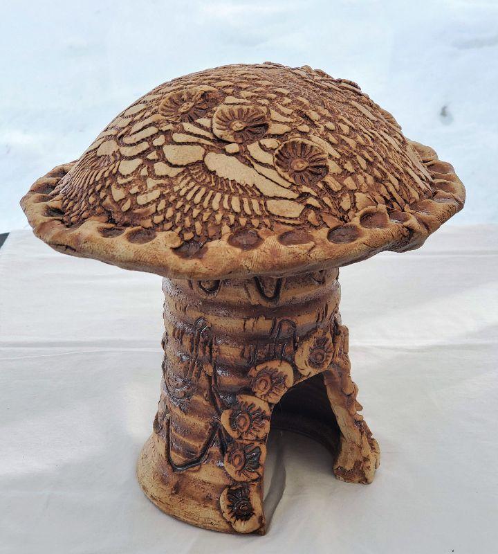 Hand-made Clay Mushroom Toad House 10" x 9"