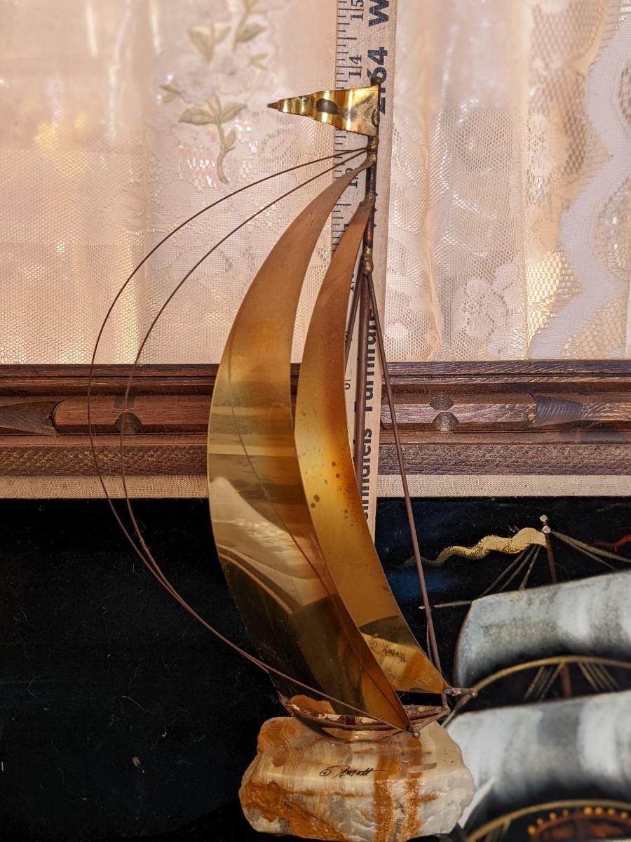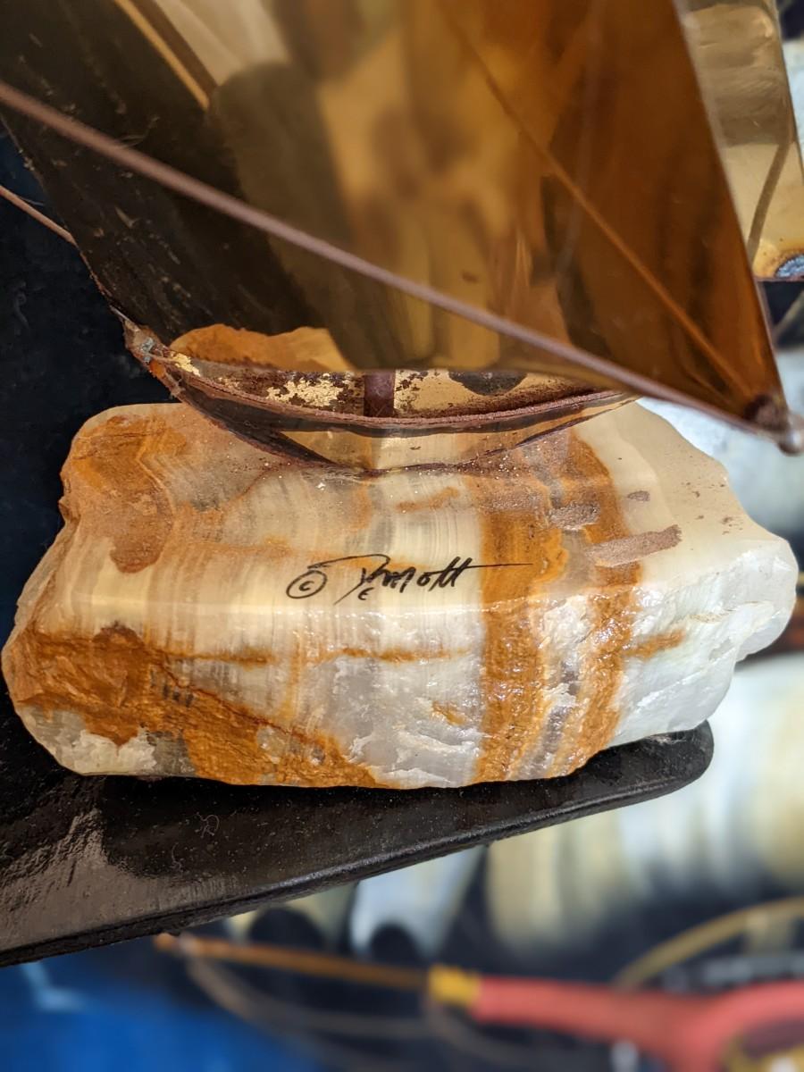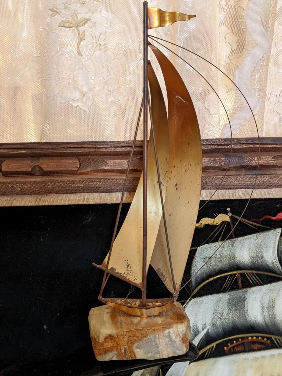 Handmade Cut and Welded Copper Sailboat on Stone Base