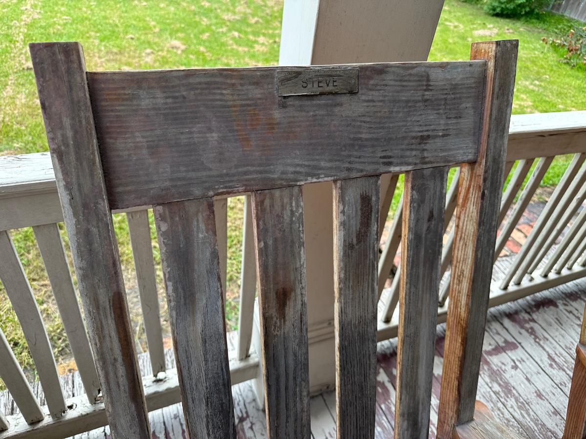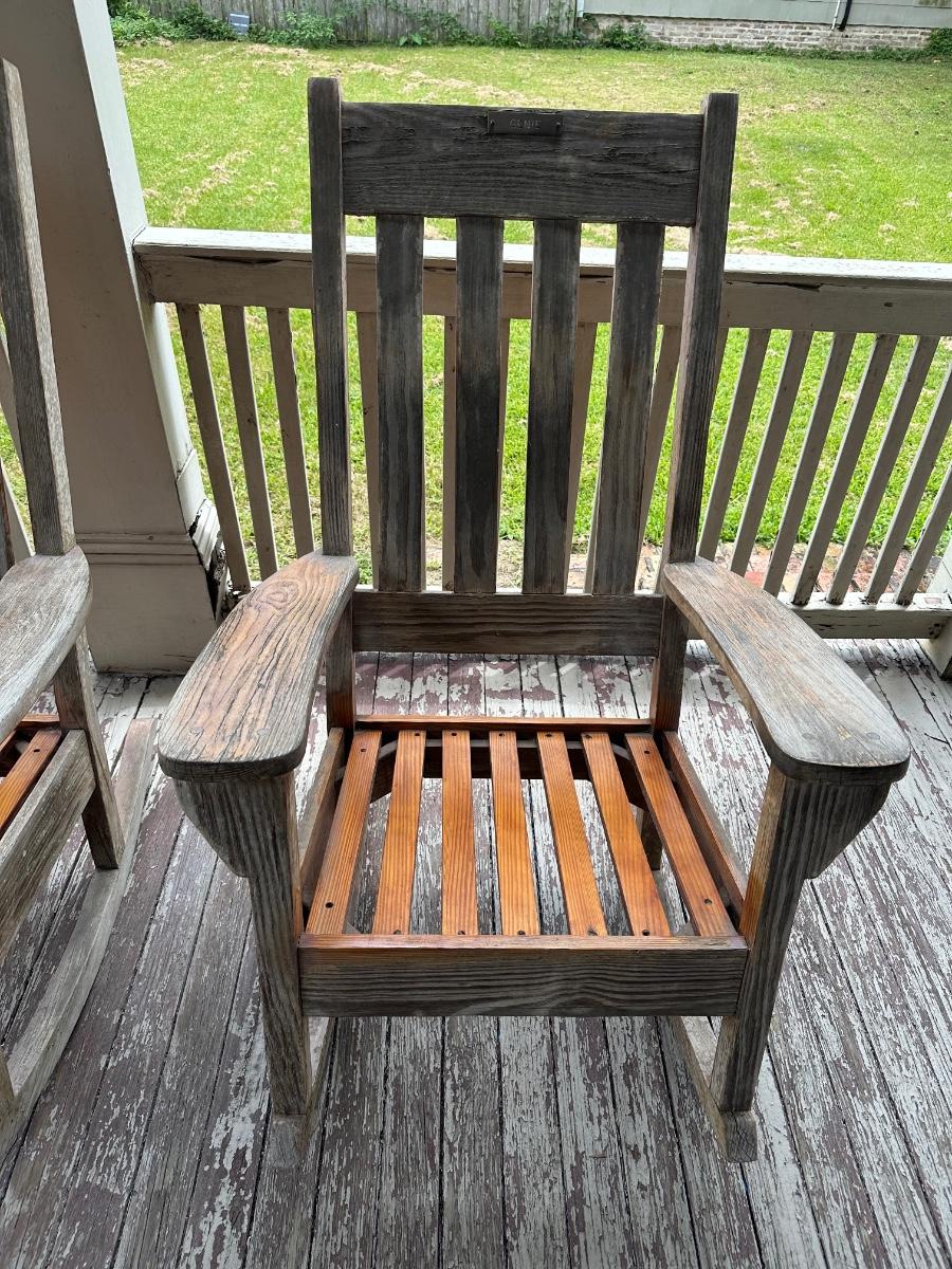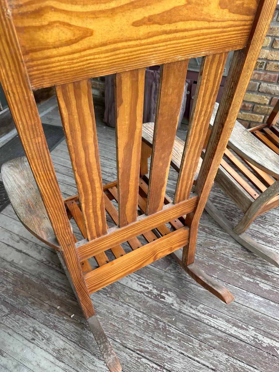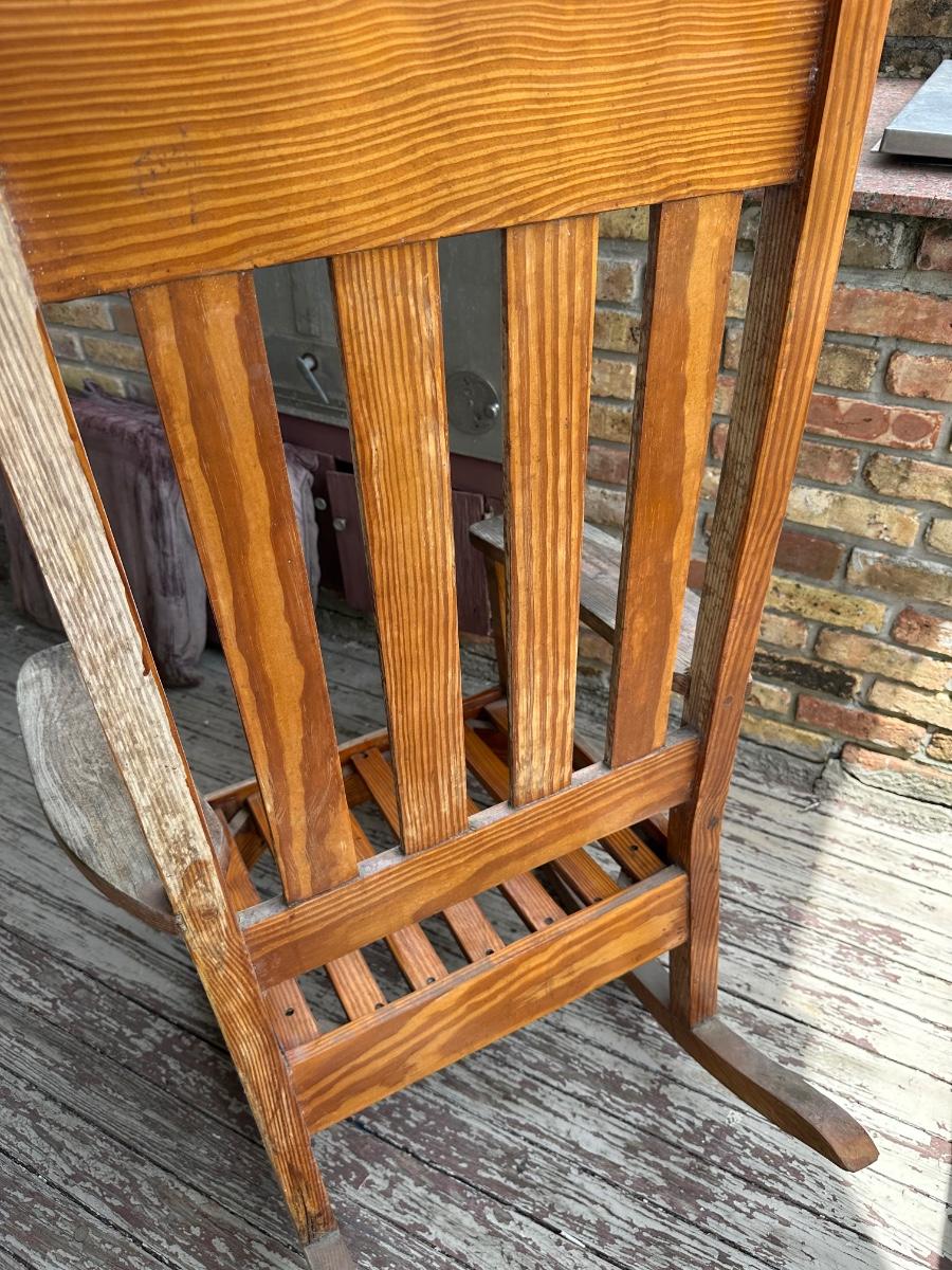 Chairs show sun fading, but areas beneath the cushions and the back side are well preserved. Some refinishing suggested. Please see photos for details.