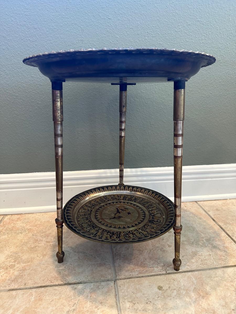 Handmade Egyptian Two-Tier Metal Tray Table – Y.H. Label, Made in Egypt