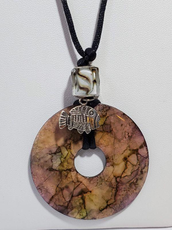 Handmade Enameled Washer w/ Glass and Fish Beads