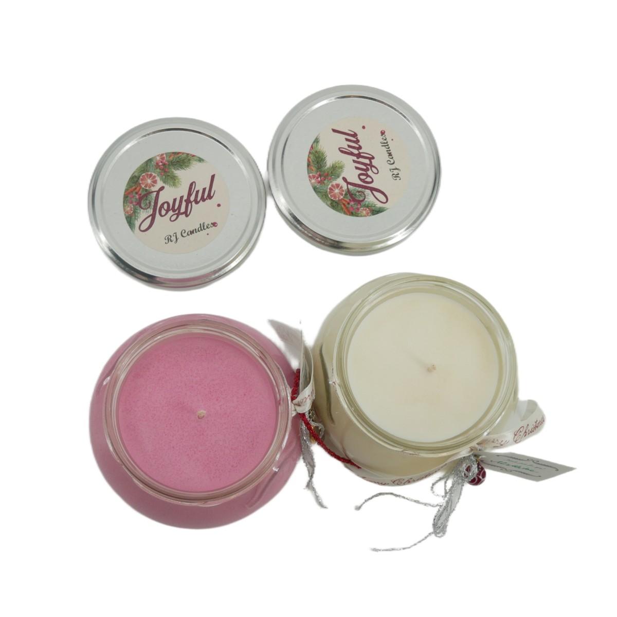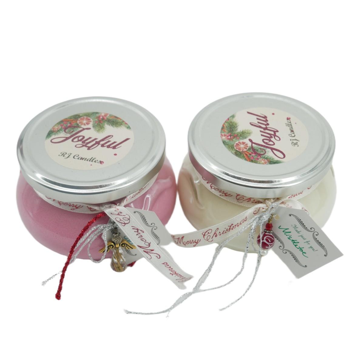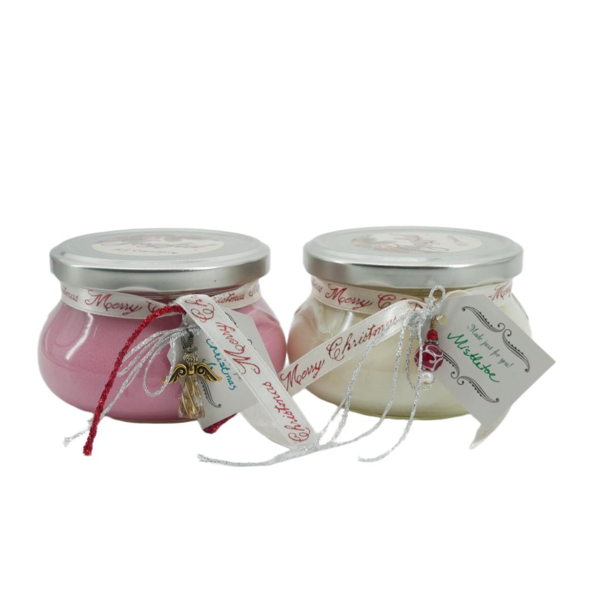 Two new, handmade holiday candles in scents Christmas Tree and Mistletoe.