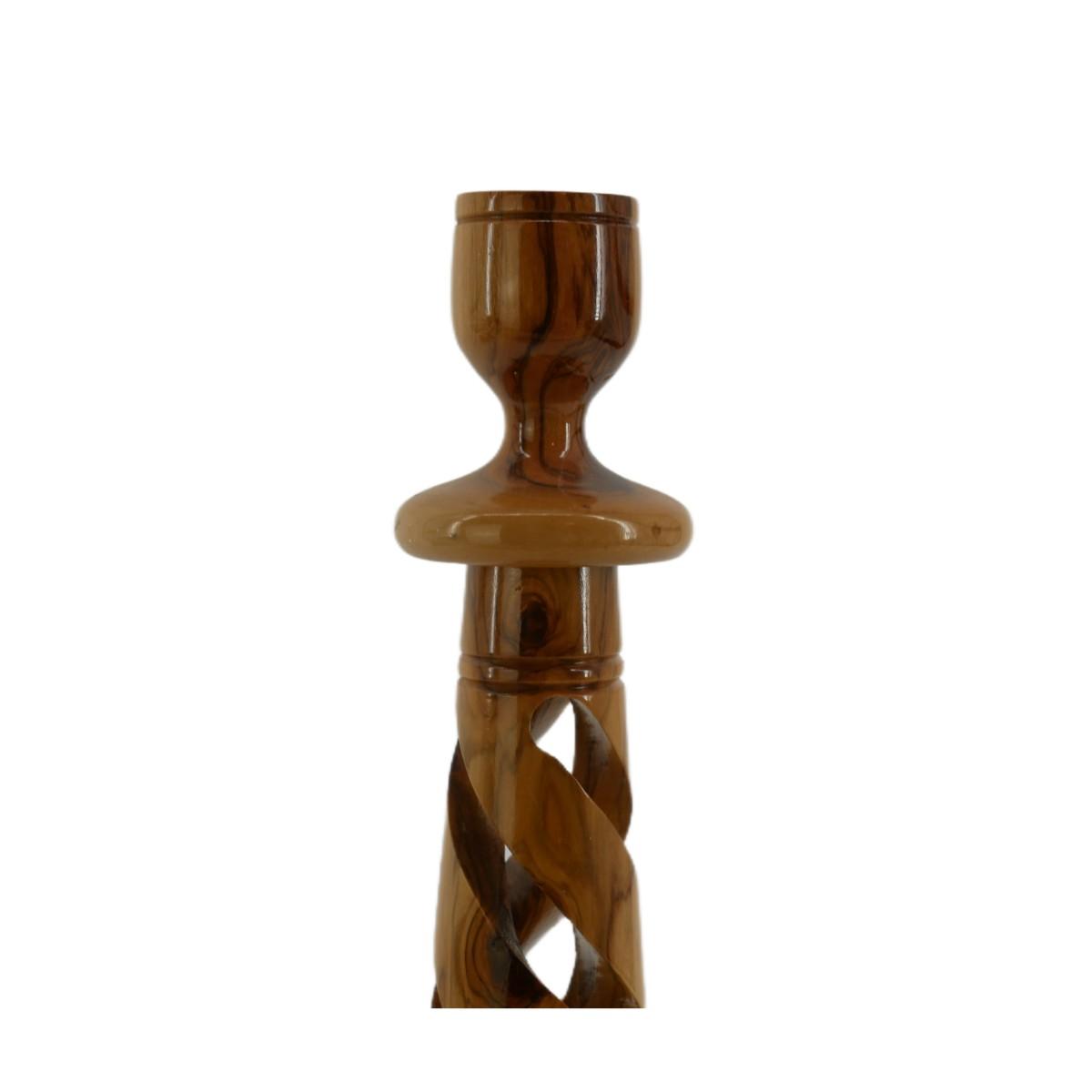 Handmade Holy Land Bethlehem wooden candlestick made with olive tree wood. Gorgeously designed, no issues found. Measures 3" x 10", weighs 7 oz.