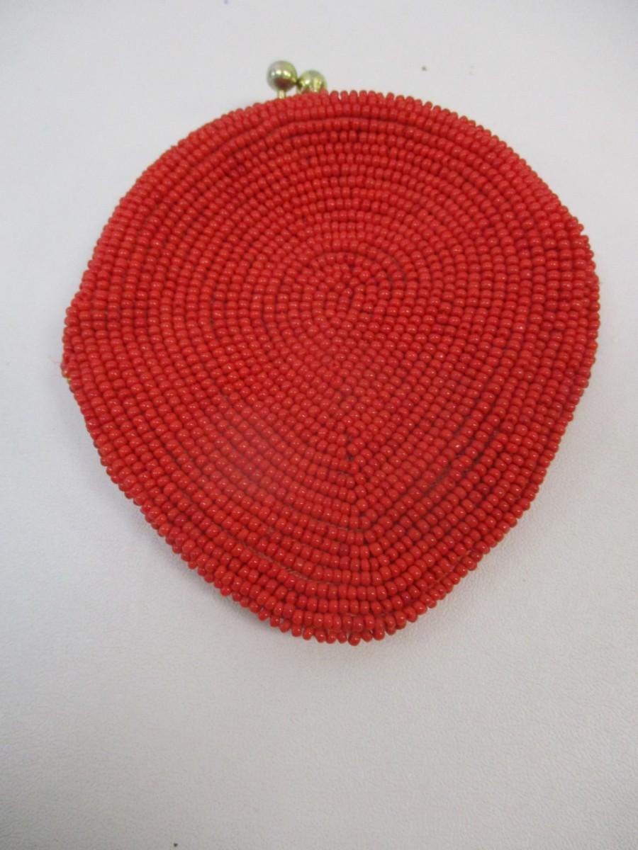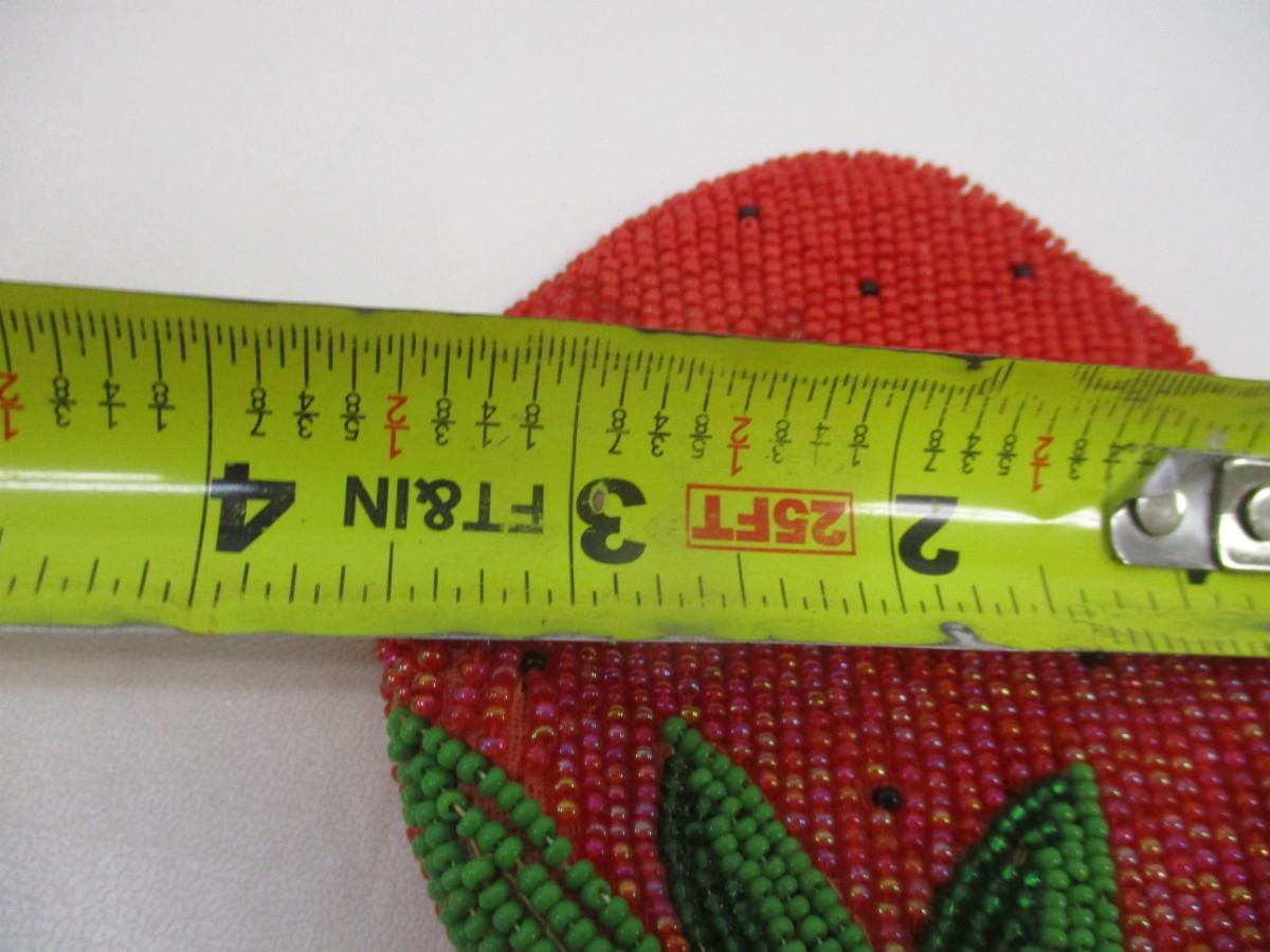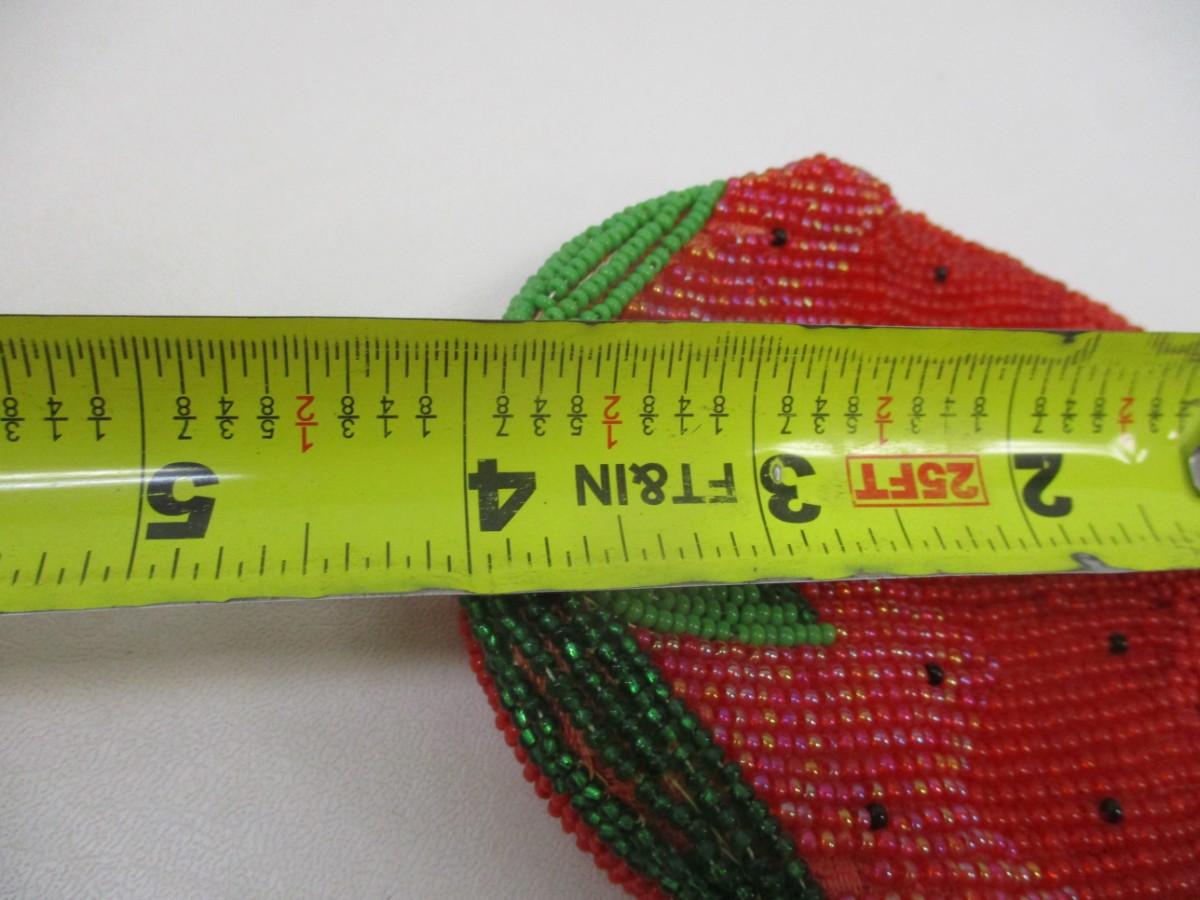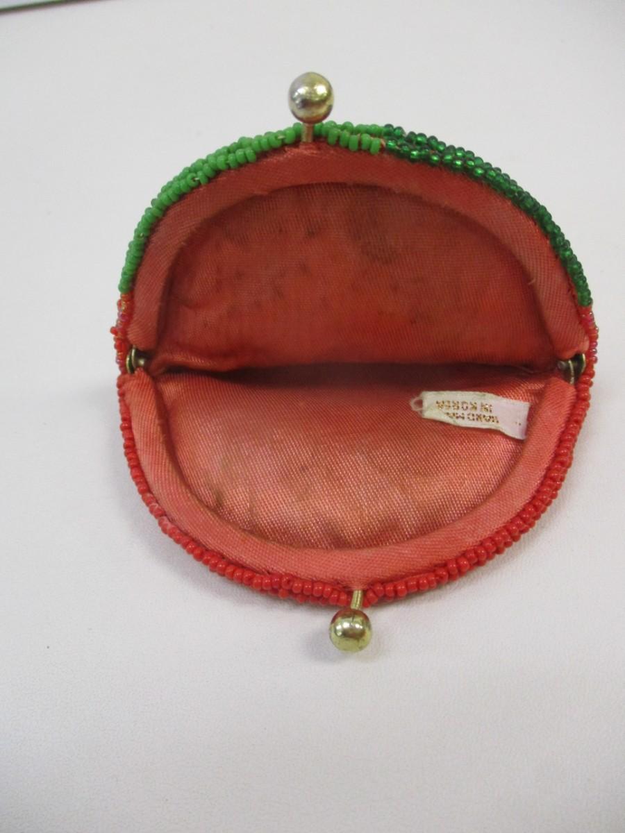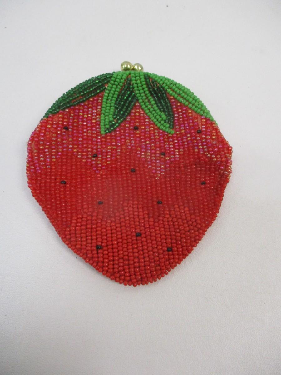 Handmade In Korea Vintage Strawberry Shaped Beaded Pouch Coin Purse Snap Opening 1950's