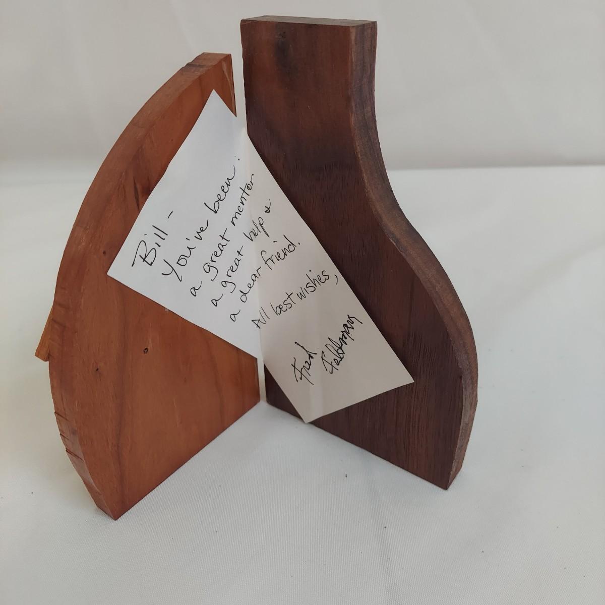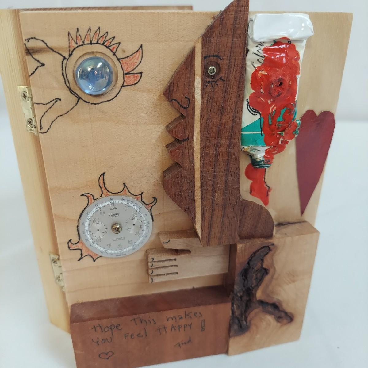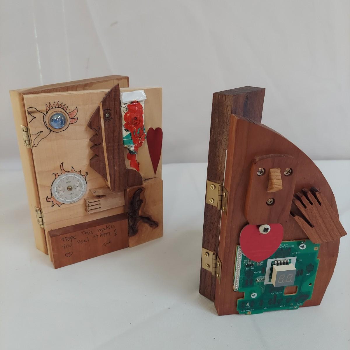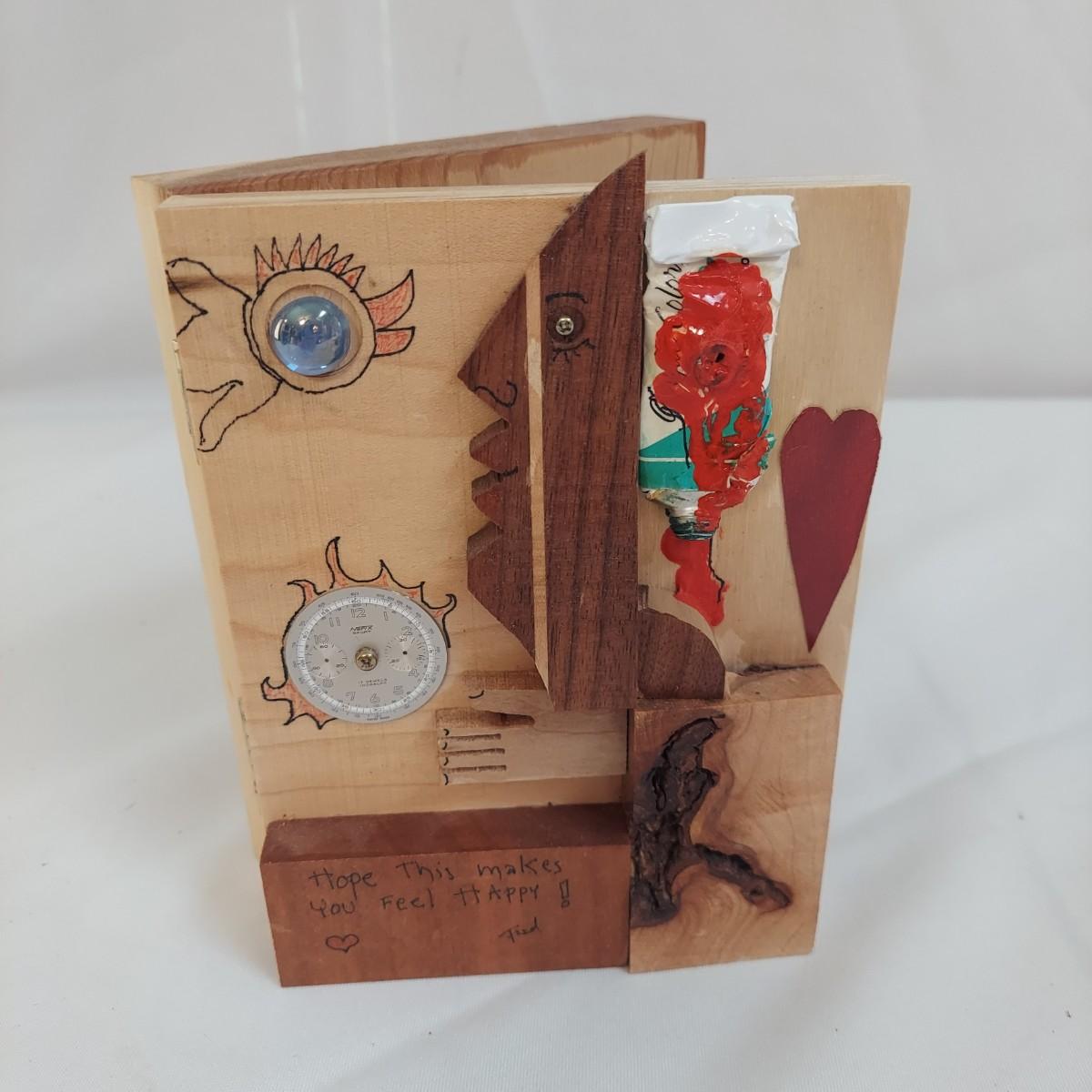 Two wooden multi media art pieces in a greeting card style. They are 6.5 x 7"H. Please see photos for details. Shipping available