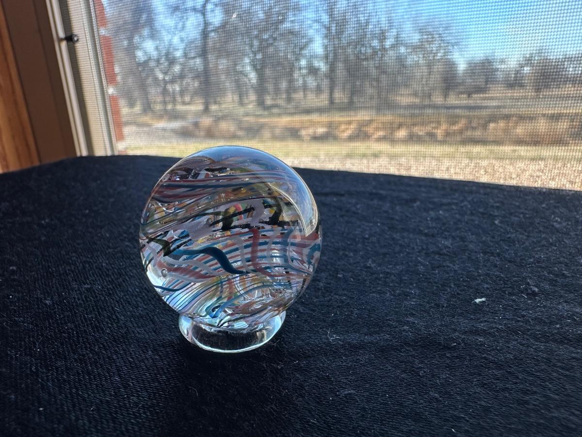 HANDMADE MARBLE WITH A VIBRANT SWIRLING RAINBOW DESIGN