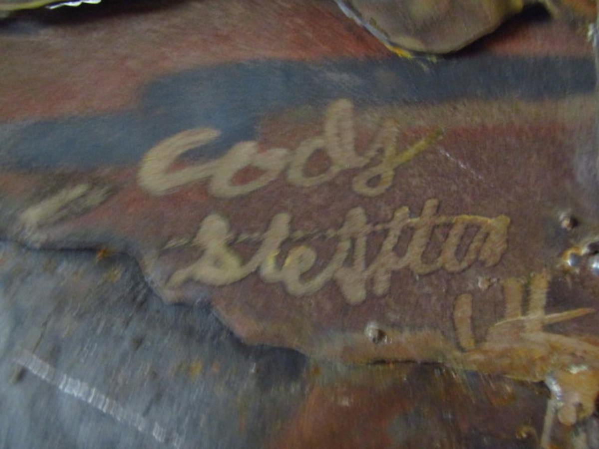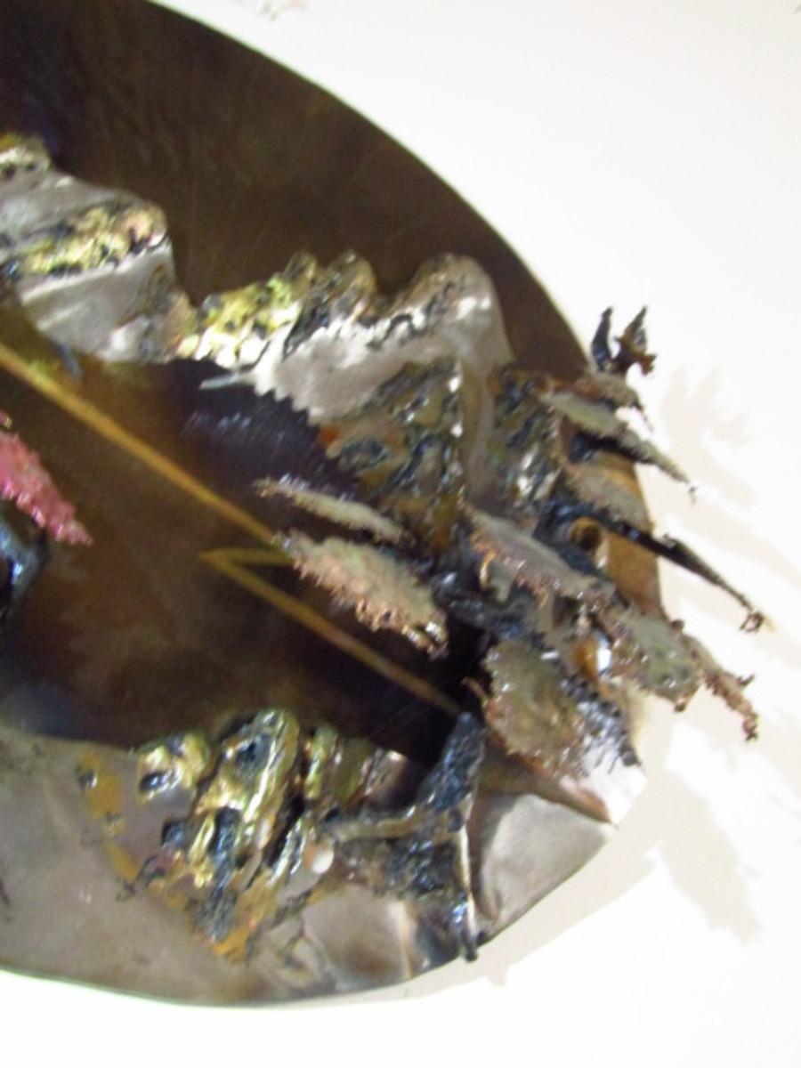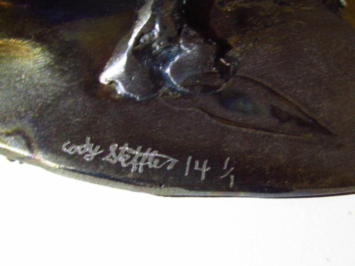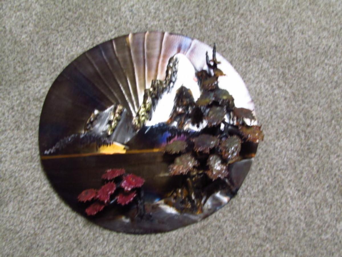Handmade Metal 3-D Wall Art by Cody Steffler. This is a very heavy, well-made piece. Other examples of this artist's work can be found at steelcrazysculptures.com. This piece is classified as 'Round Mountain', is approx 12 inches in diameter, and retails for $295.