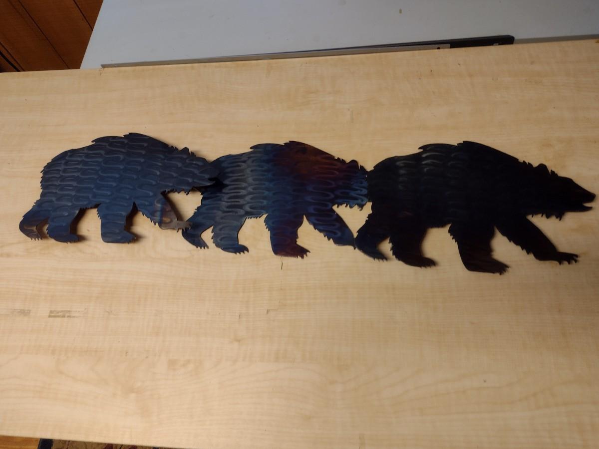 Handmade Metal Wall Art (Bears) PLEASE NOTE:. Due to no internet connection or wireless service, all invoices must be prepaid via PayPal, Stripe, or Zelle prior to arrival at pick up. Exact change cash onsite is acceptable but absolutely no debit or credit cards at time of pick up.