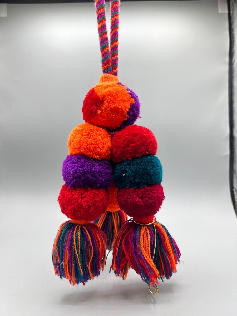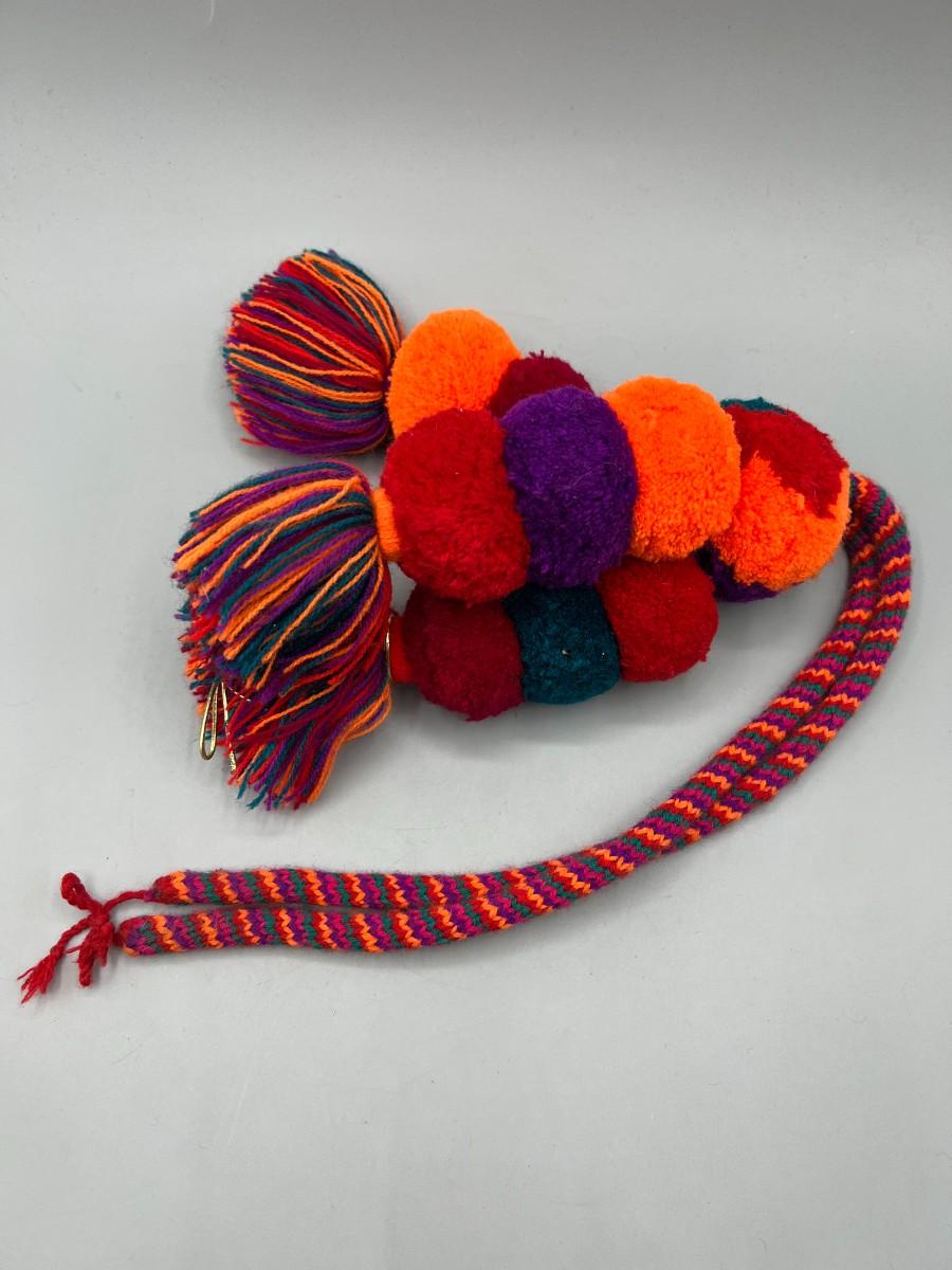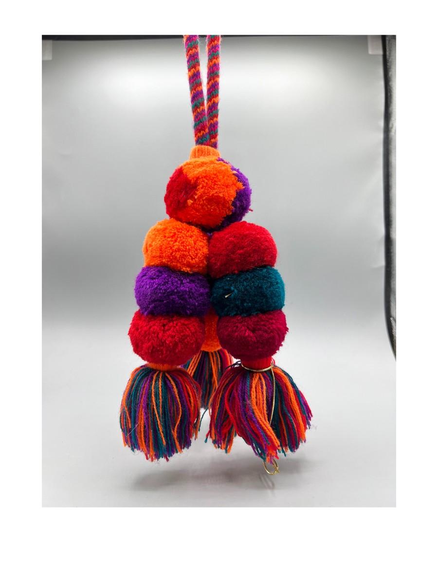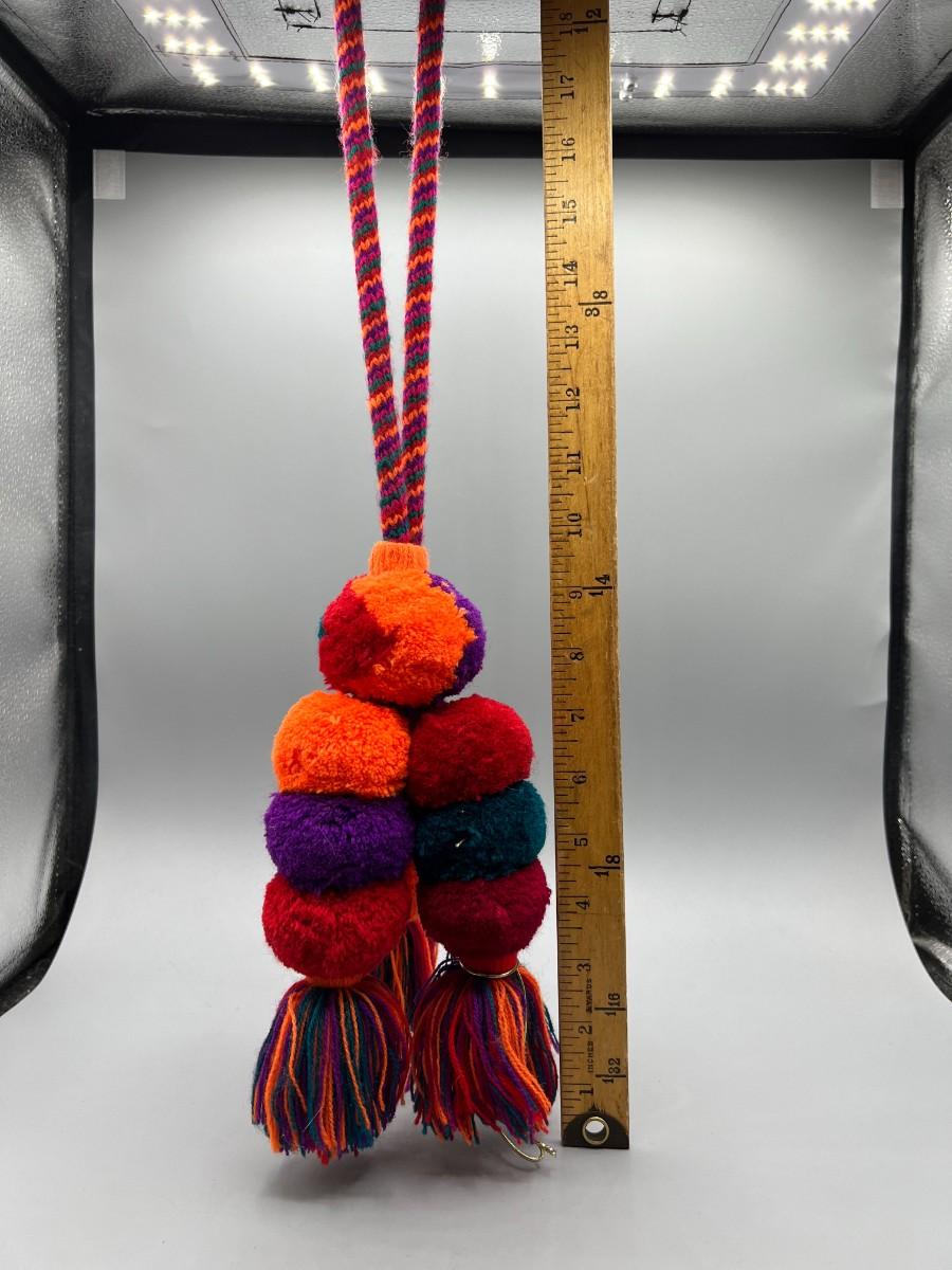 Handmade Mexicano Inca Holiday Hanging Decor, there are some light stains on one of the cloth balls, but there is no significant damage and is in overall good displayable condition. Check pictures for more details and for sizing.