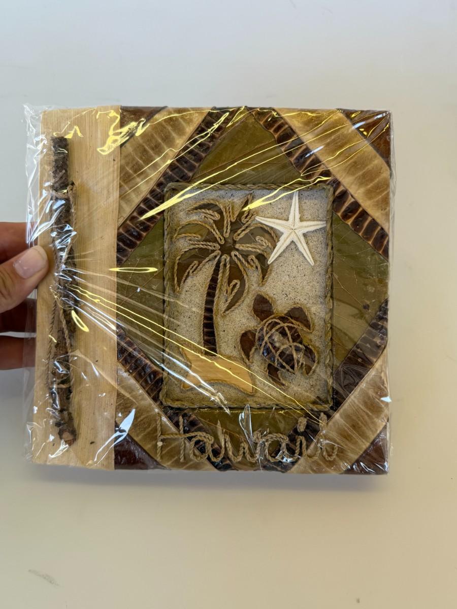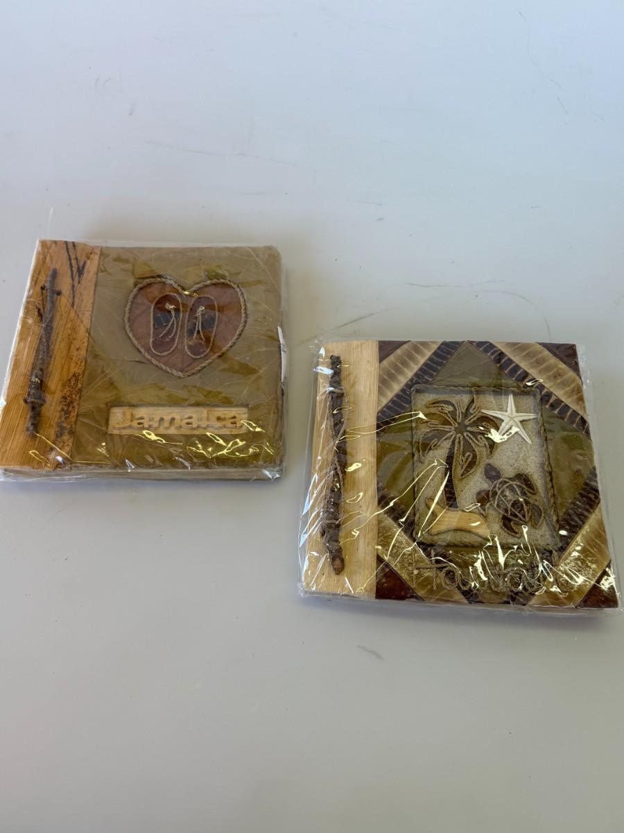 Two beautifully crafted nature-themed journals with bark covers and handmade paper. Wrapped in protective plastic.