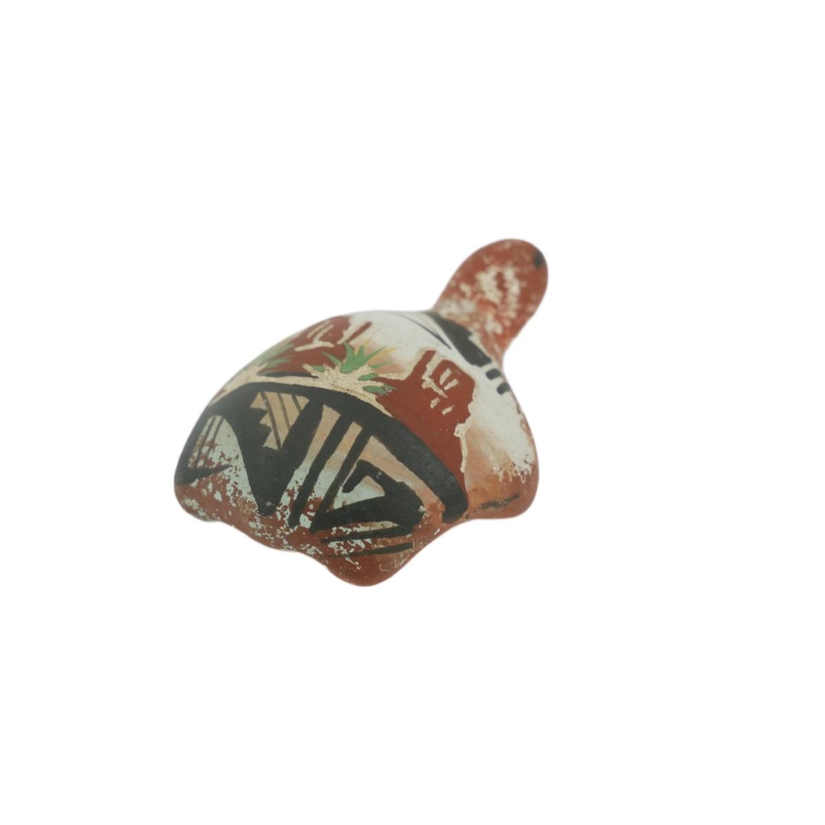 Handmade and hand-painted Navajo Native American tortoise turtle figurine depicting Monument Valley. Signed on bottom "Drake, Navajo". In excellent condition! Measures L 2.5" x H 1" x W 1.75", weighs 1.2 oz. (R31)