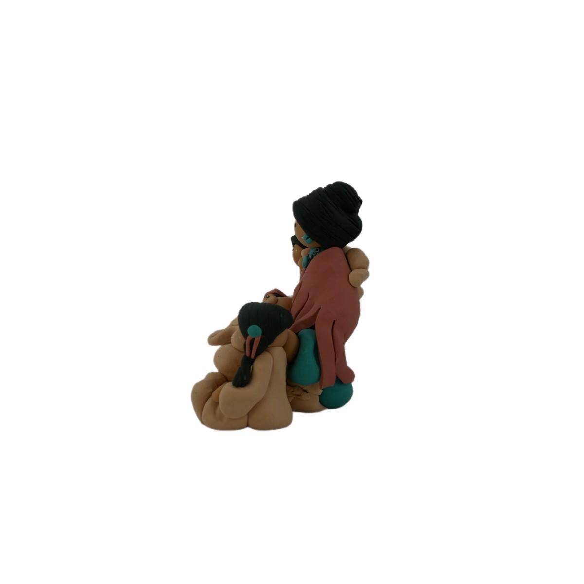 Vintage hand sculpted clay figurine of Native American Navajo woman with children and baby. Signed by artist Mary Weaver, 1997. In excellent condition! Measures L 4" x H 4" x W 2.5", weighs 9.2 oz. (C97)