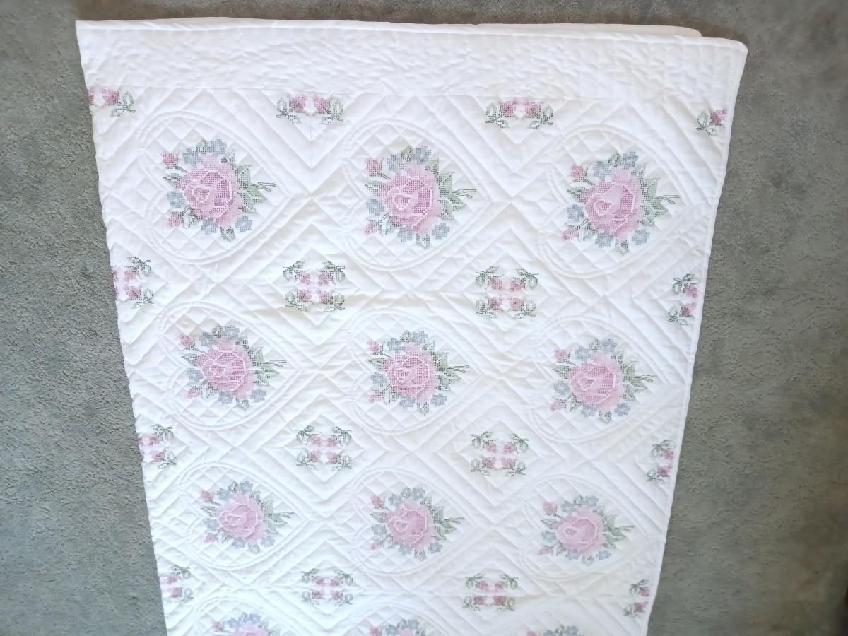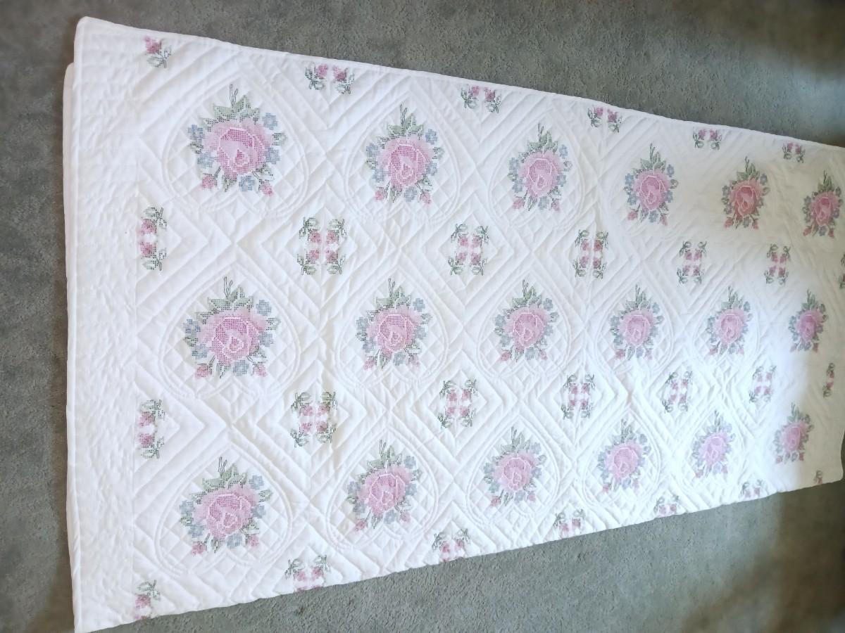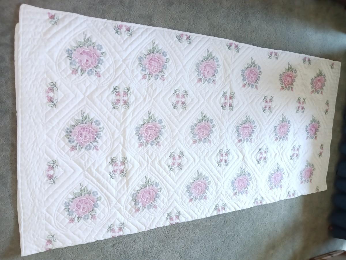 HANDMADE NEEDLEPOINT QUILTED BEDSPREAD
