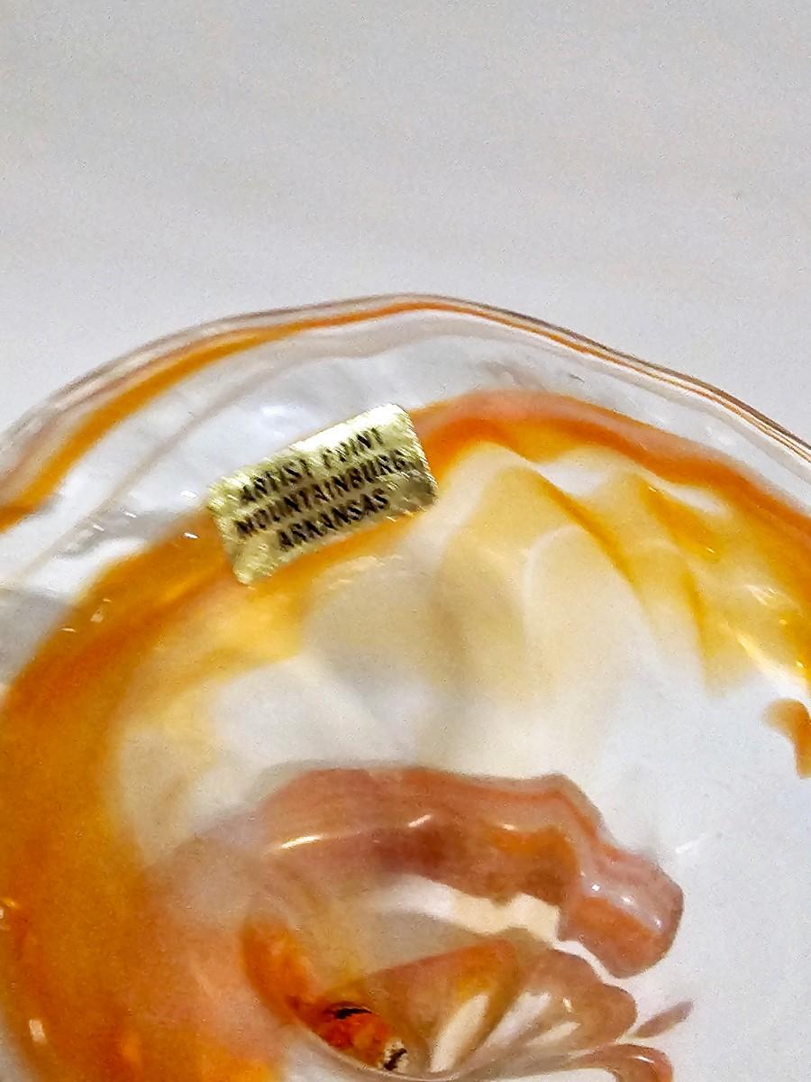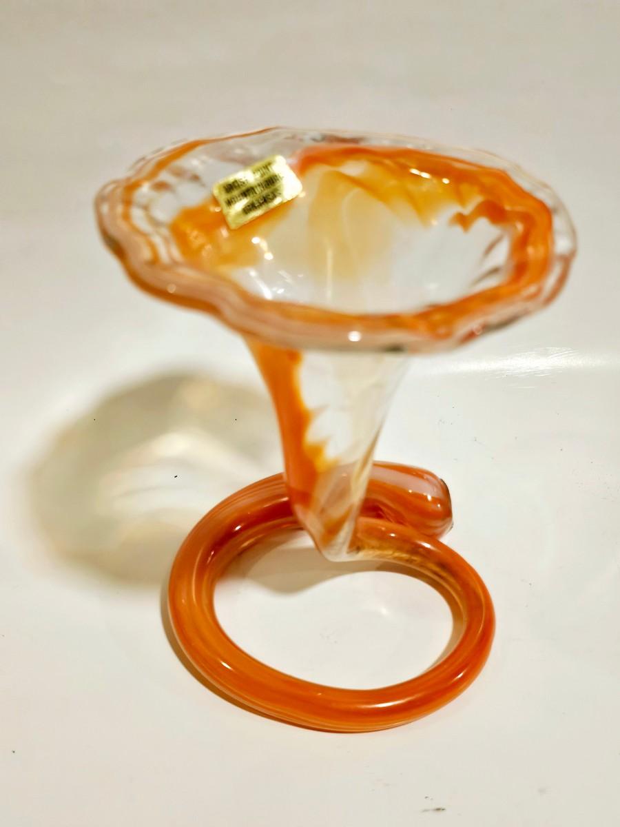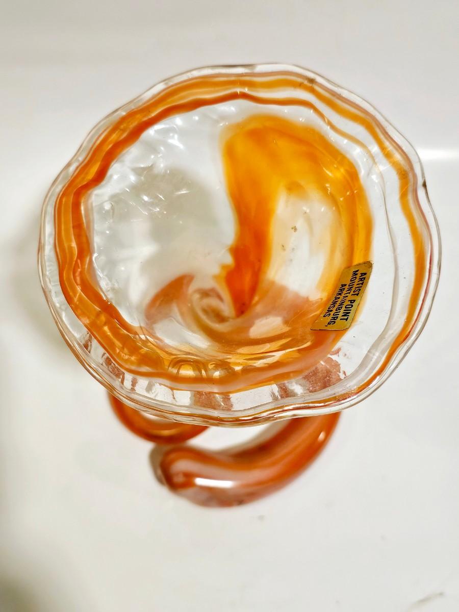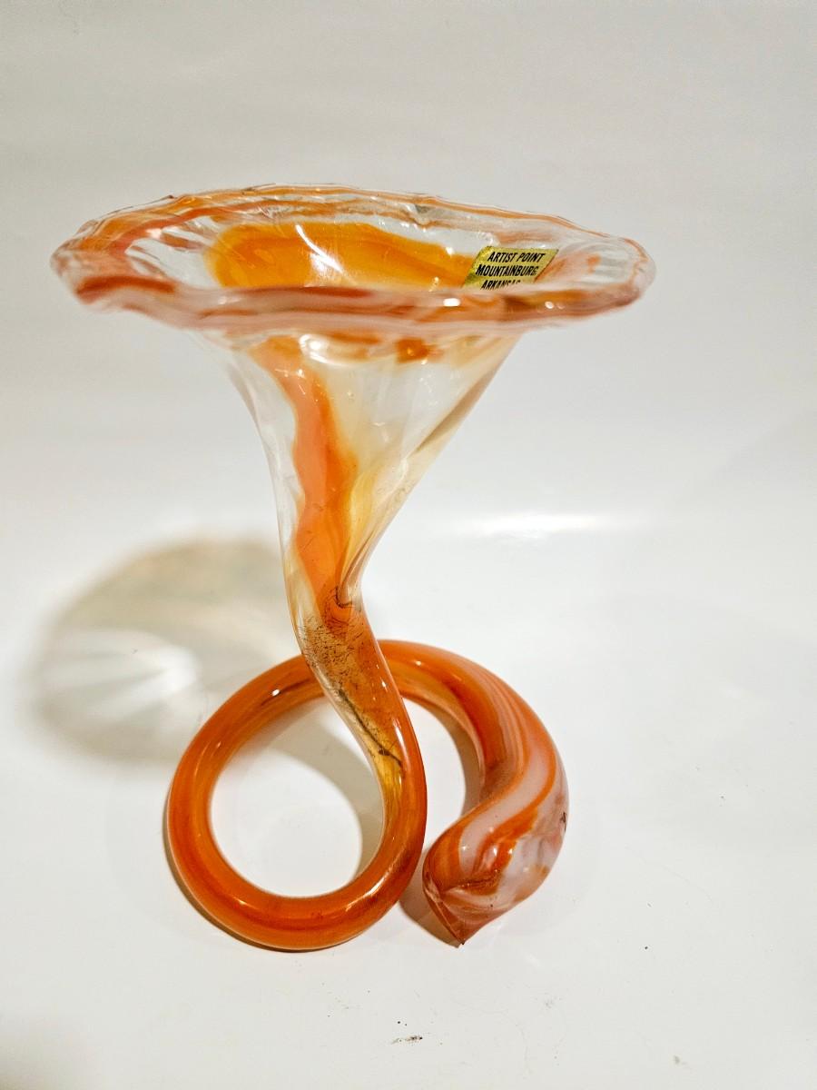 Handmade orange and white glass vase, Artist Point Mountainburg ARK 1970s style vintage