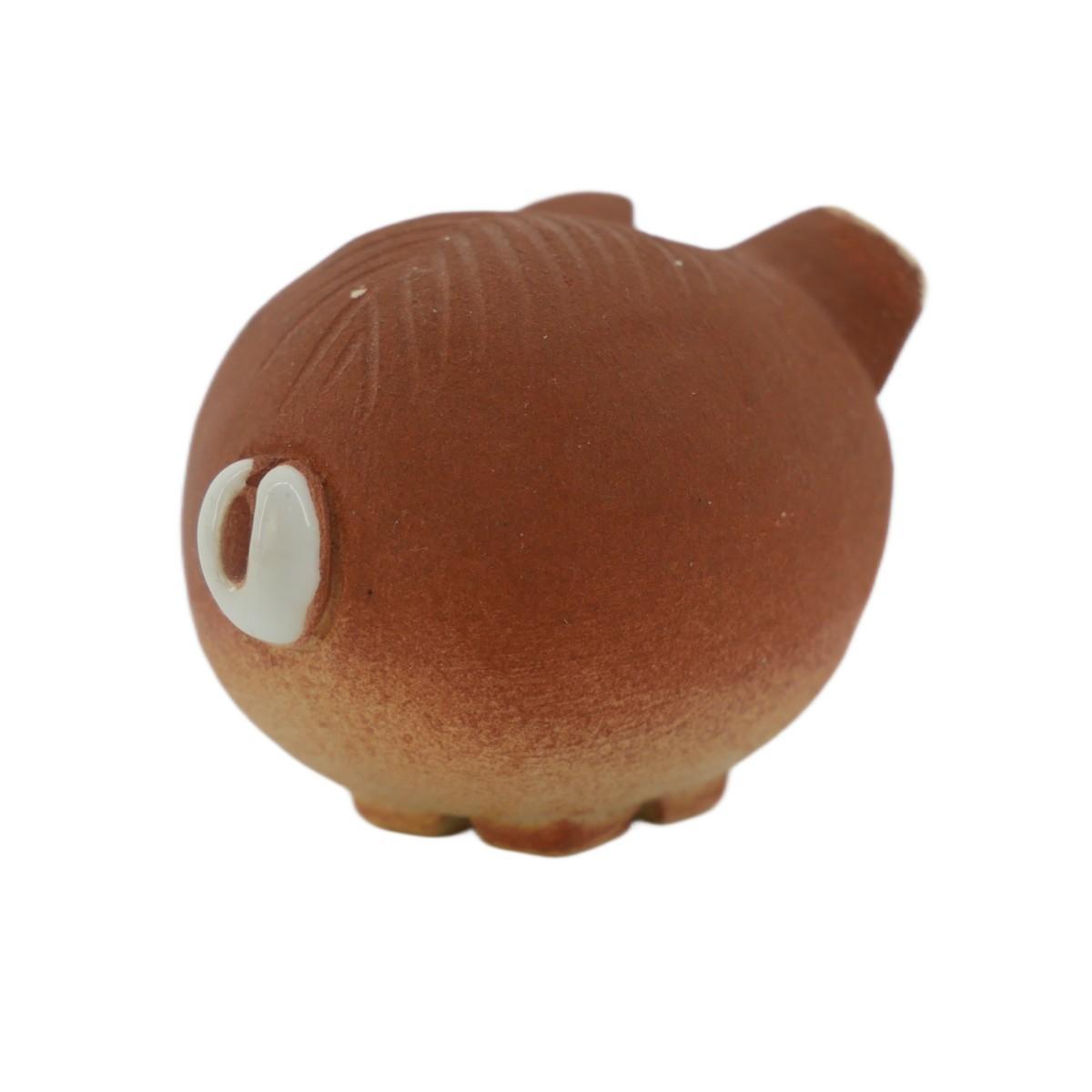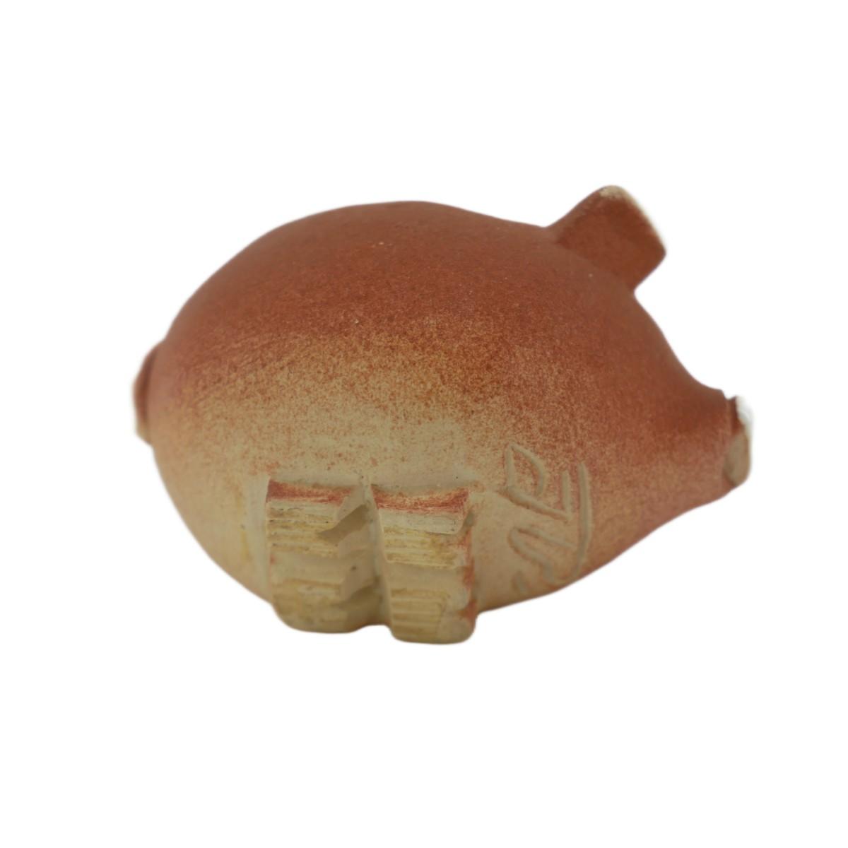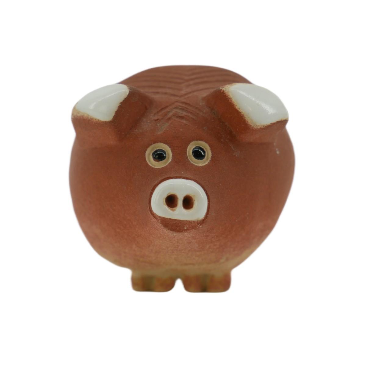 Handmade and hand-painted piggy figurine with signature on bottom. Measures 2" x 1.25" x 1.25", weighs 1.5 oz. No issues found.