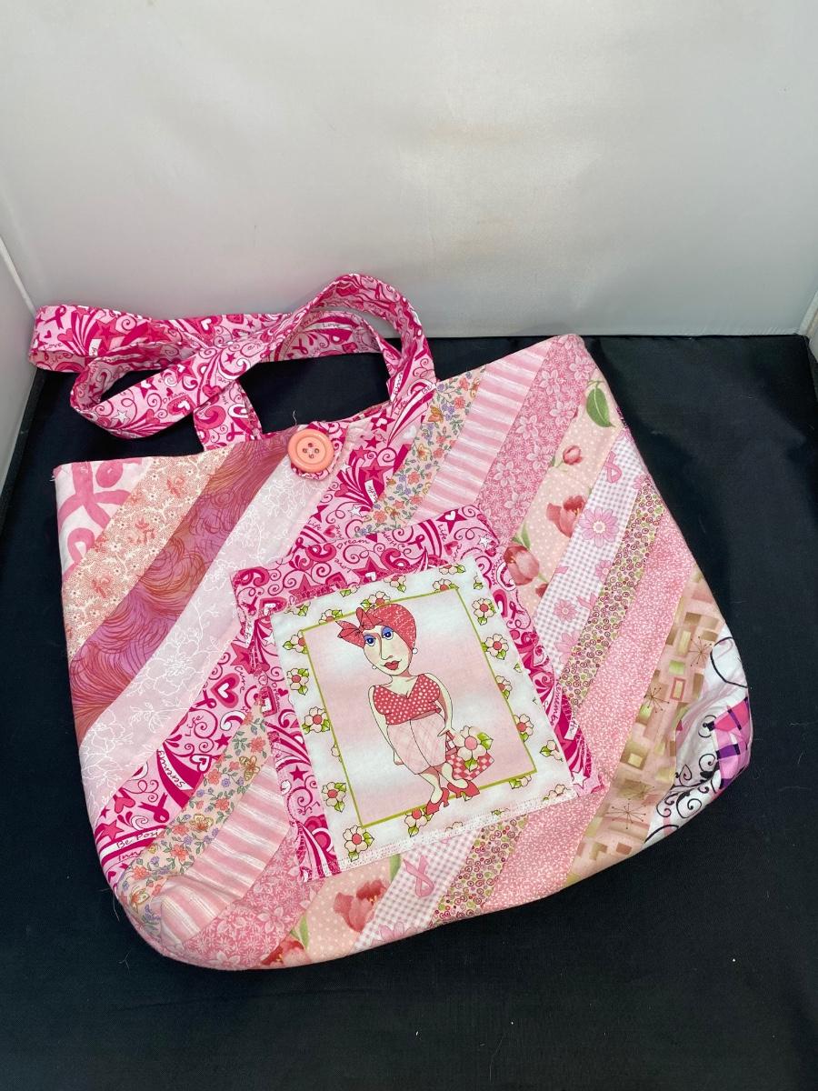 Handmade Pink Quilt-Like Tote Bag. Good condition, no spots or tears.