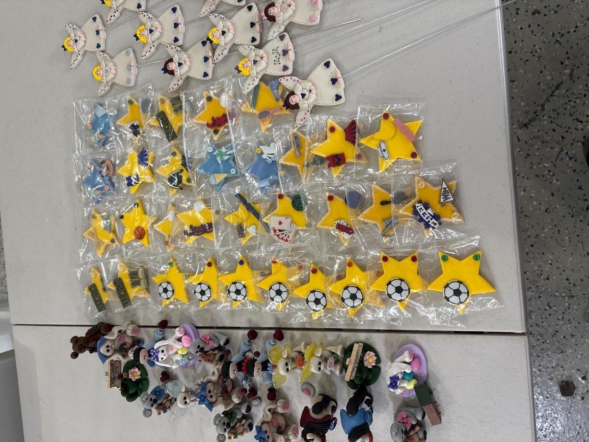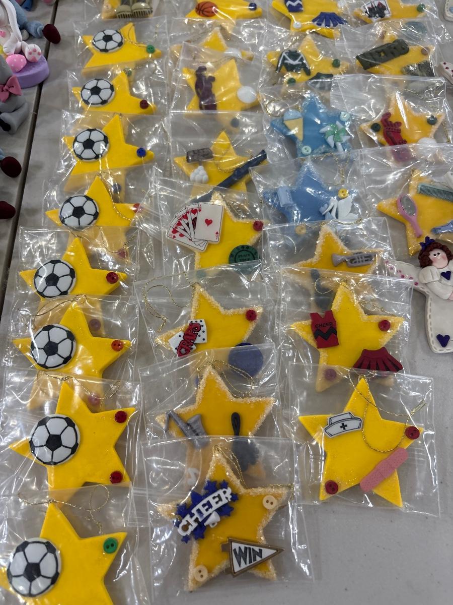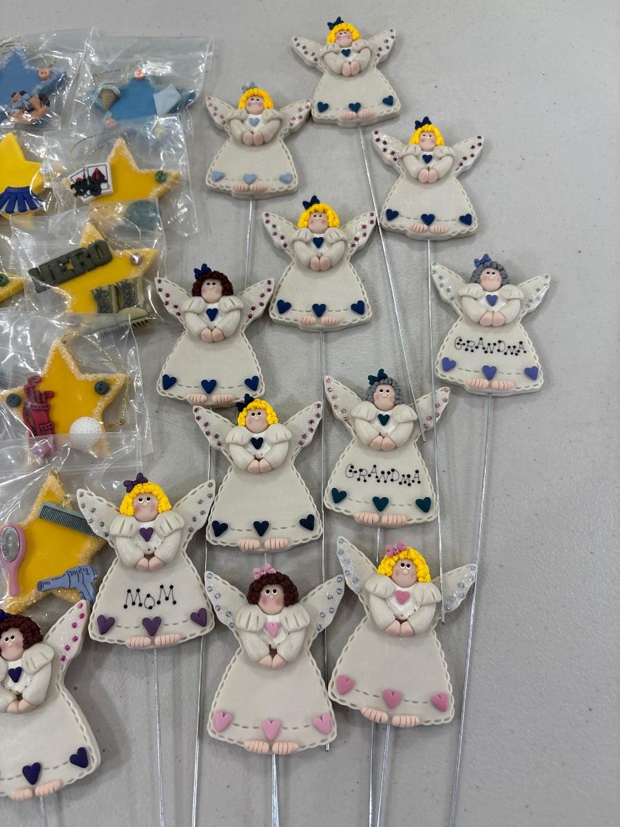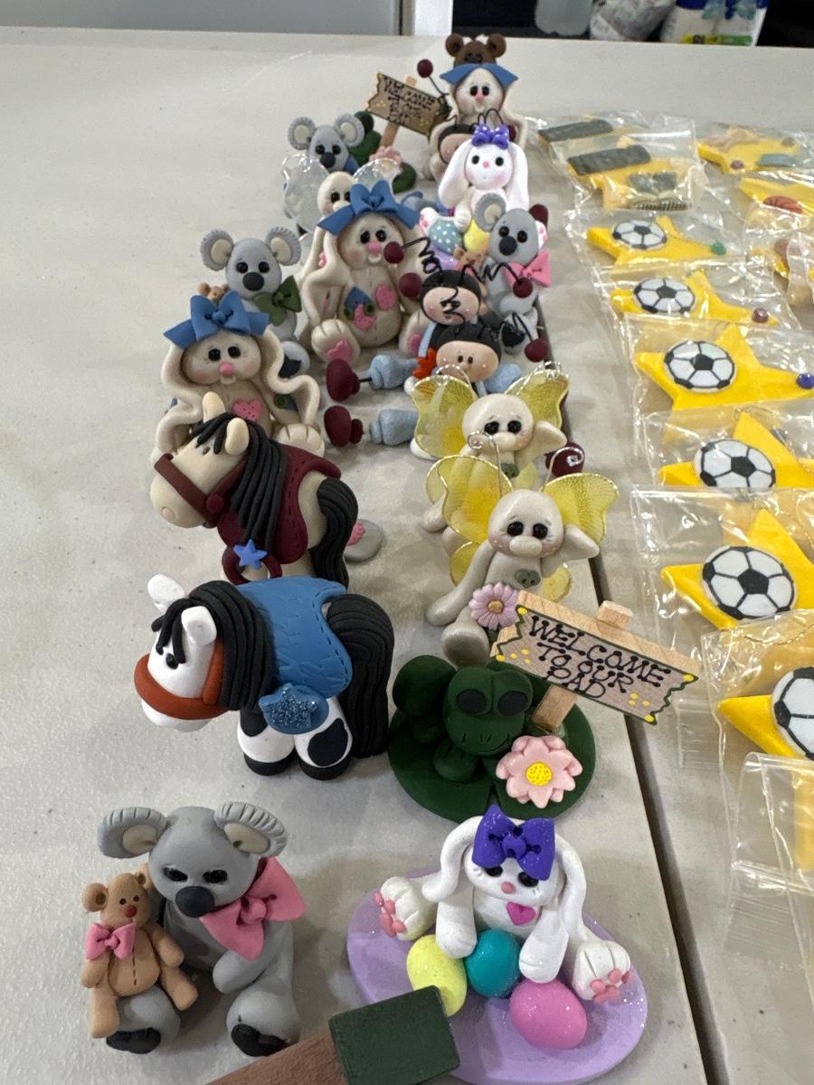Adorable, handmade polymer, clay, figurines, and sticks for plants.