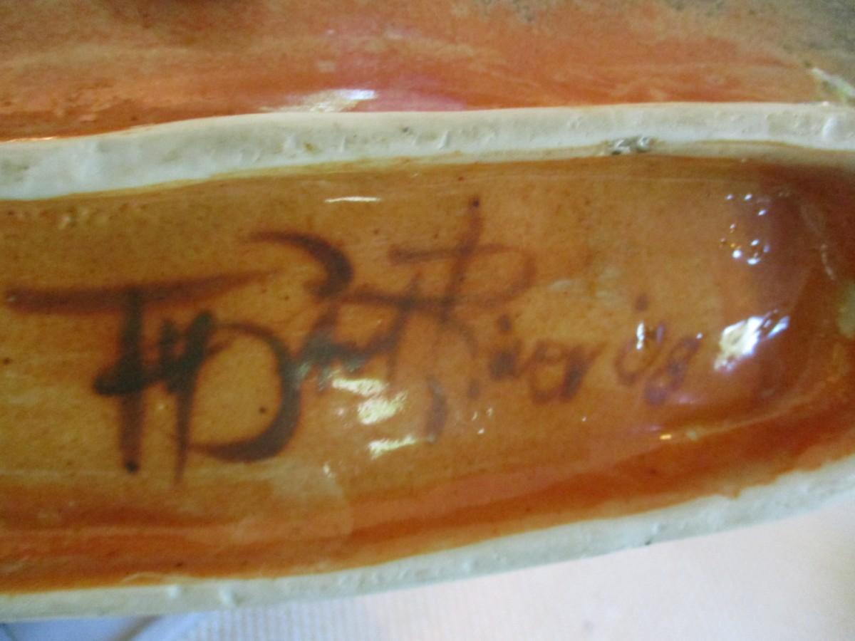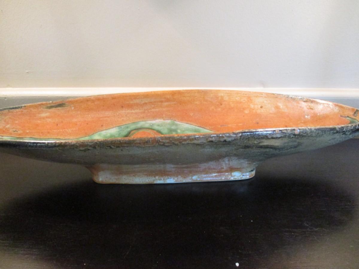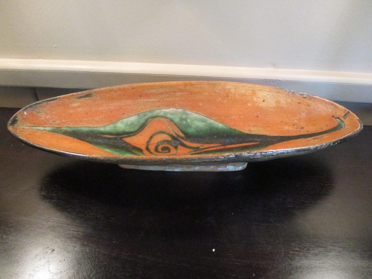 Studio Art Handmade Pottey Platter with Impressed Design Signed - B