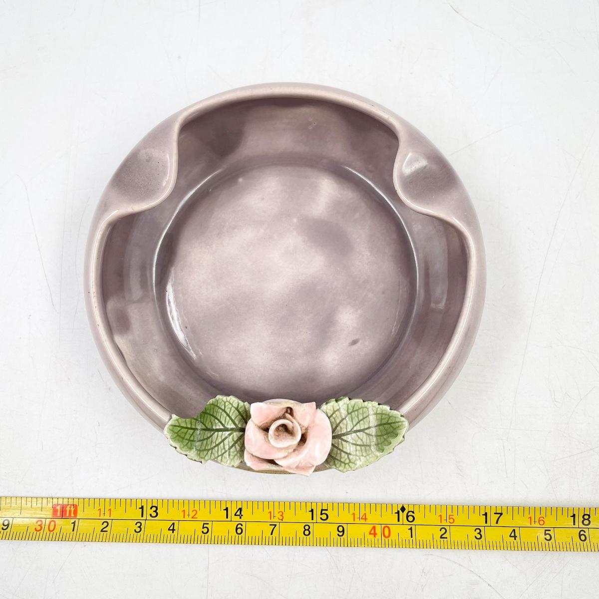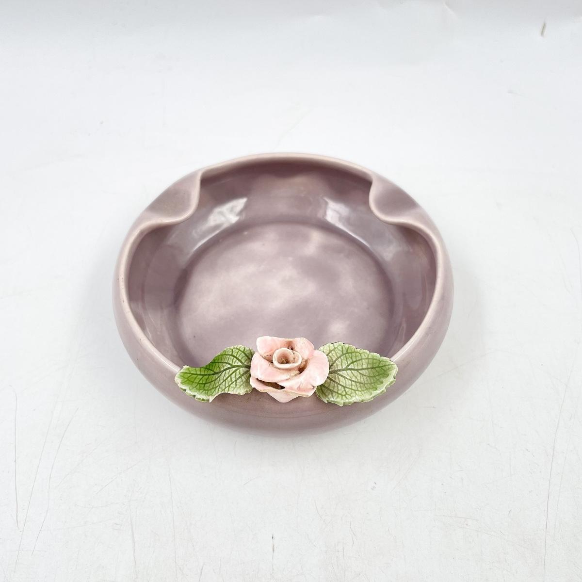 HANDMADE POTTERY 4.5” ASHTRAY W/ROSE - SIGNED “DORIS”