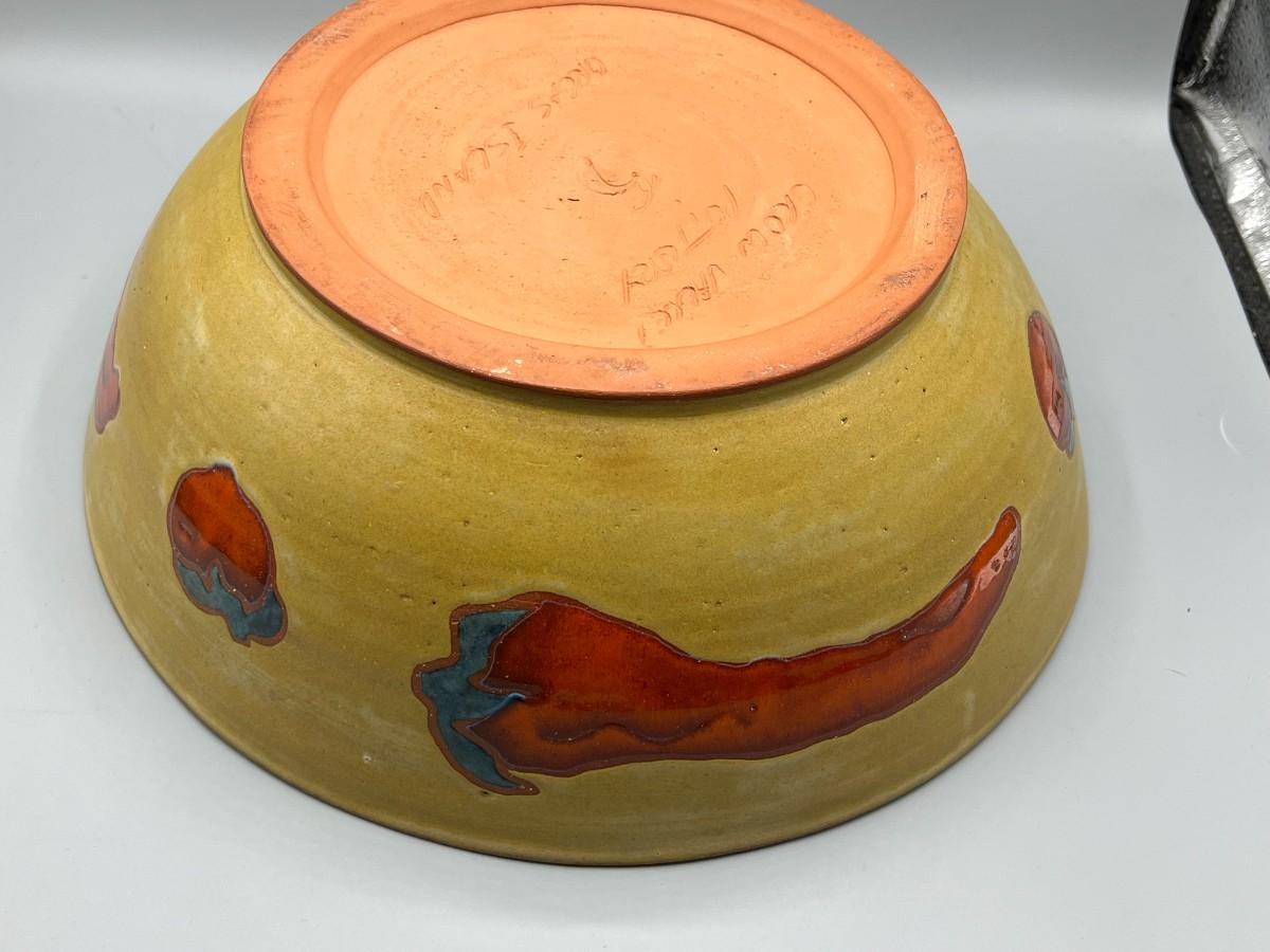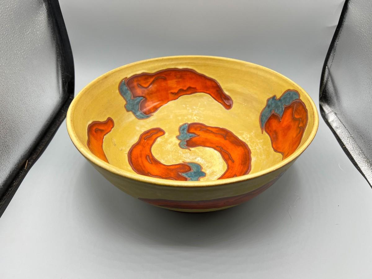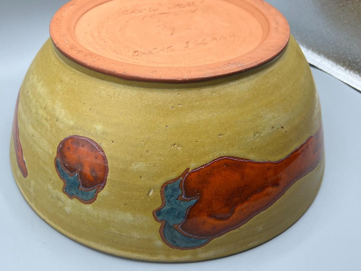 Handmade Pottery Art Red Chili Pepper Bowl From Crow Valley Pottery Orcas Island, there is no significant damage to the bowl and is in good useable condition. Check pictures for more details and for sizing.