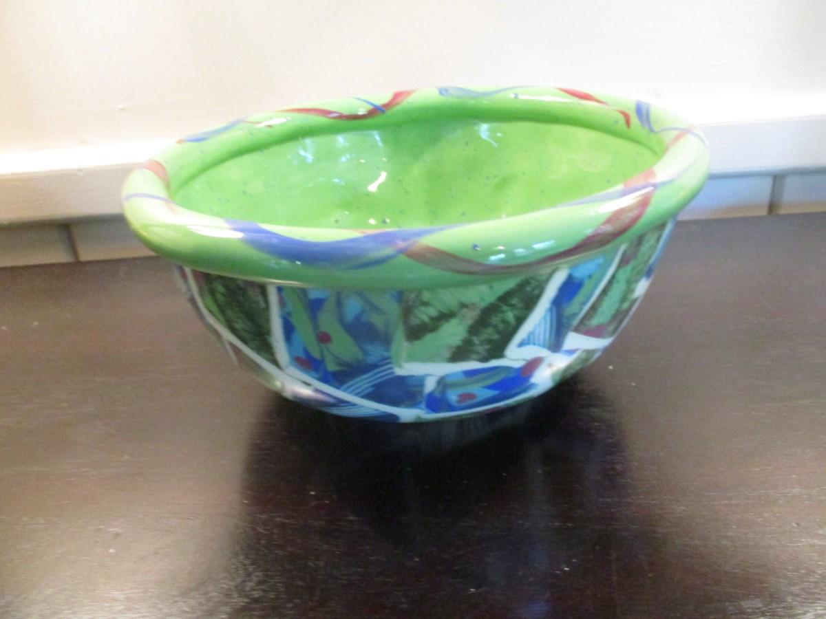 Hand Painted Pottery Bowl- Signed by Artist- Approx 8 1/2" in Diameter (G)