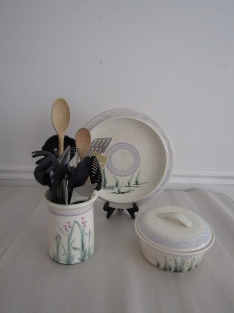 Handmade Pottery Kitchenware- Covered Baker, Plate, and Utensil Holder