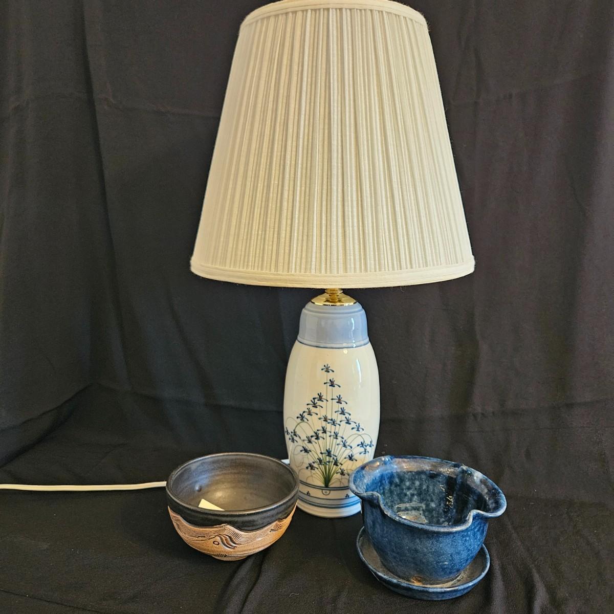 Handmade Pottery Lamp, Planter and Bowl (DR-DW)