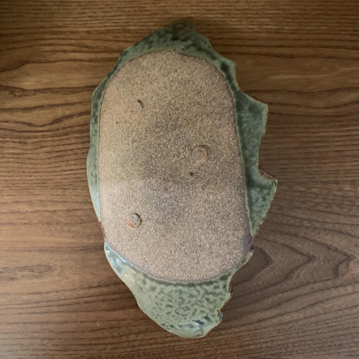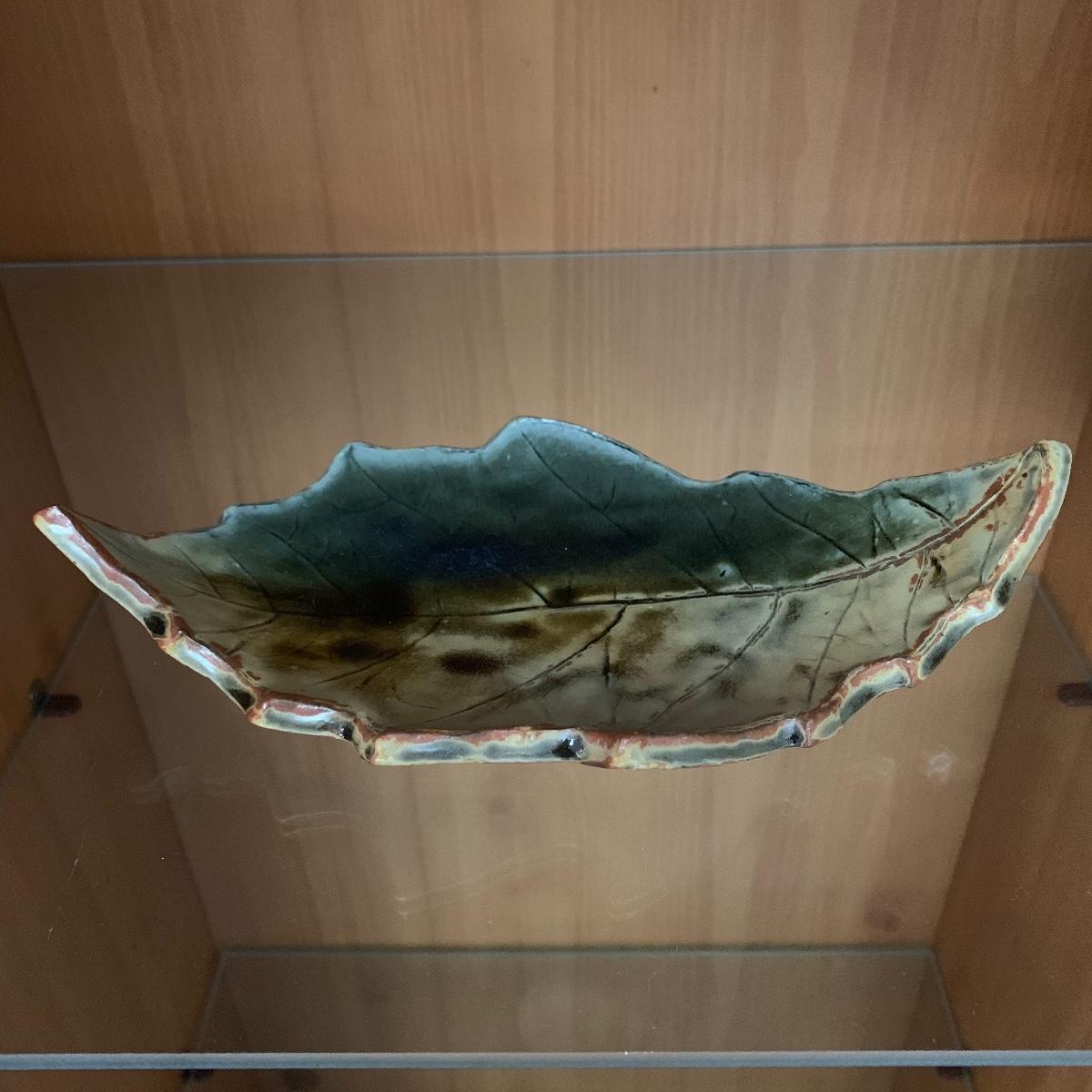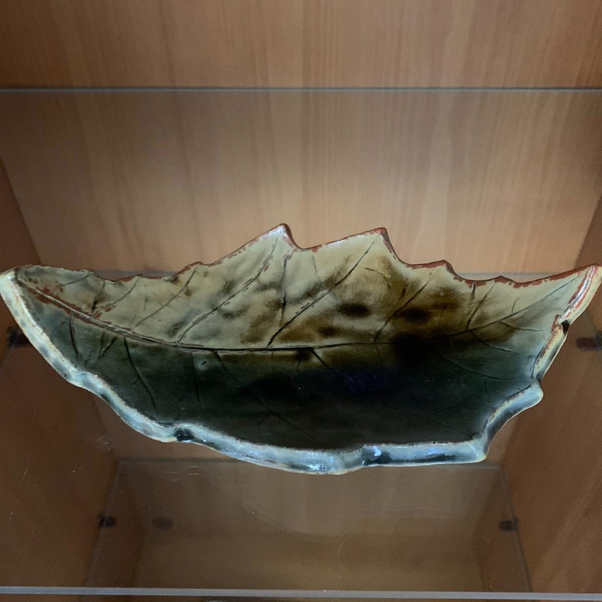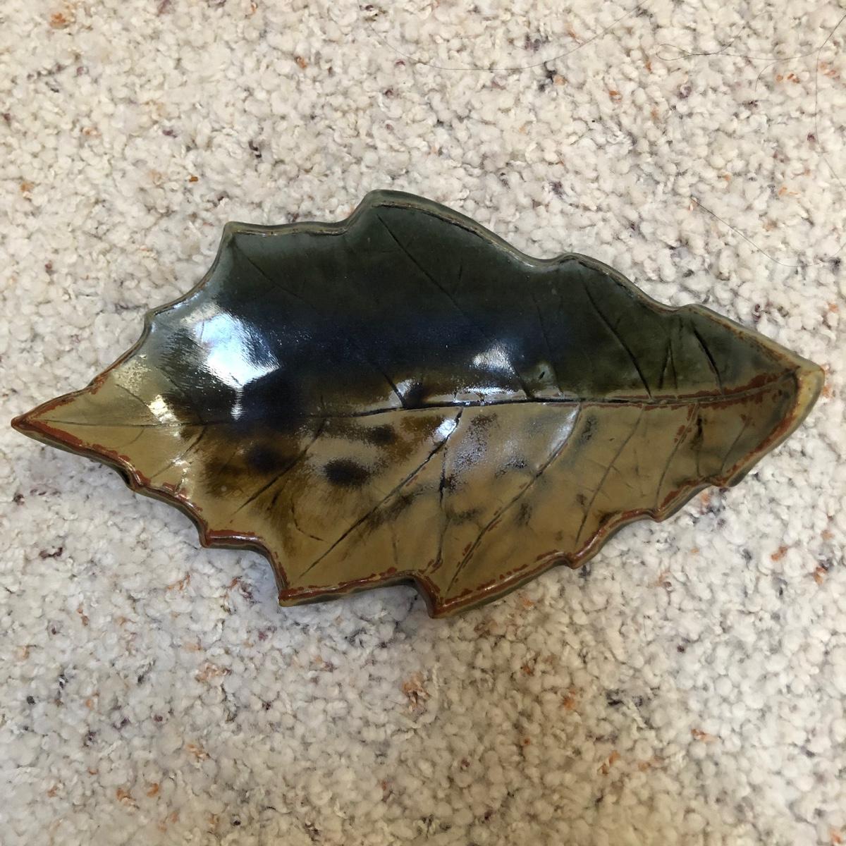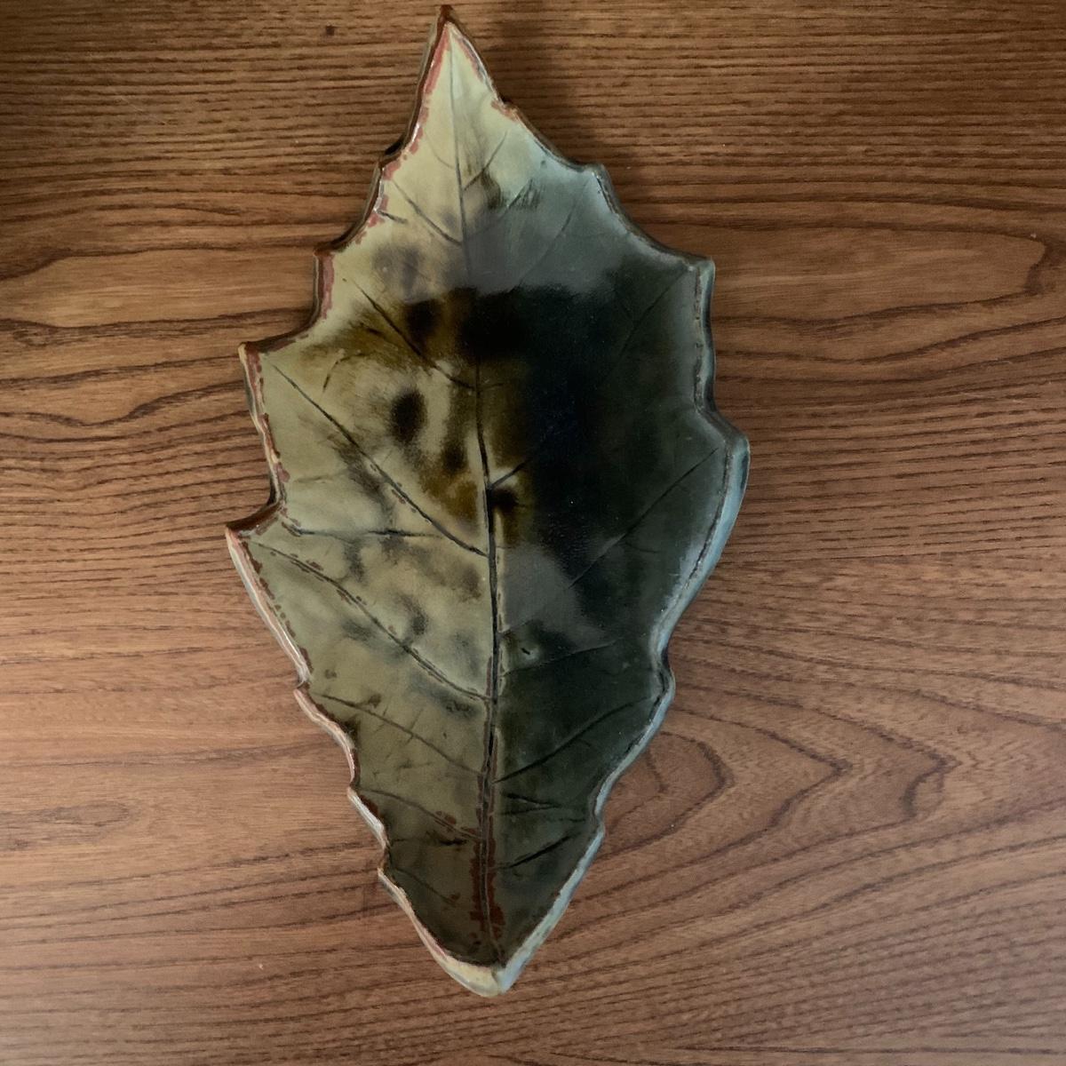 This handmade pottery leaf is cute as a button, and measures 9” X 6”.