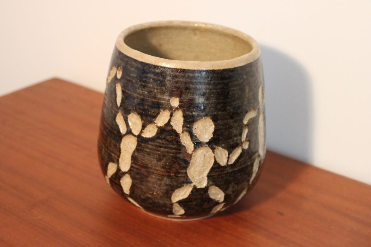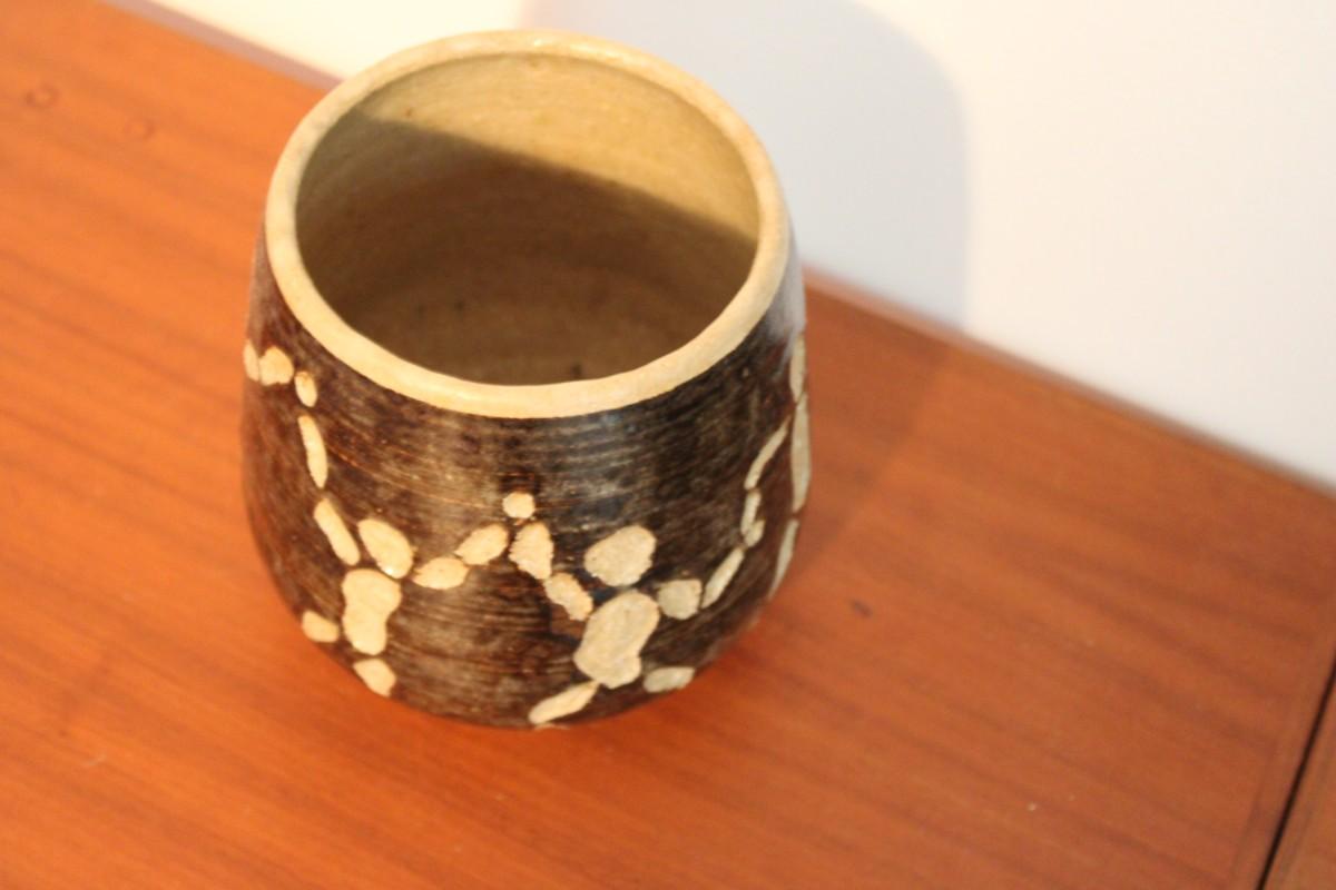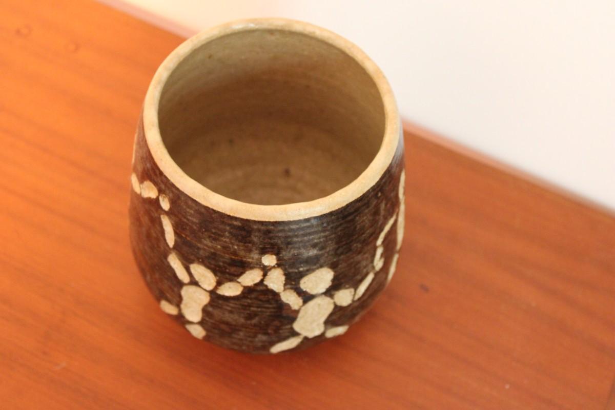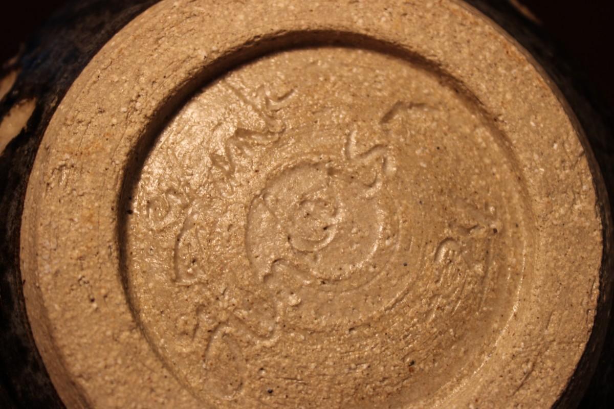 Hand Thrown Pottery Vase with Figural Imprints Signed By Artist