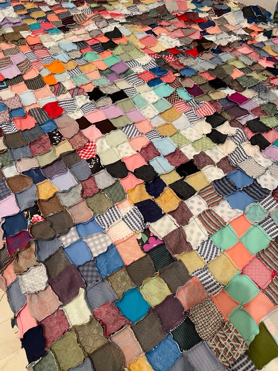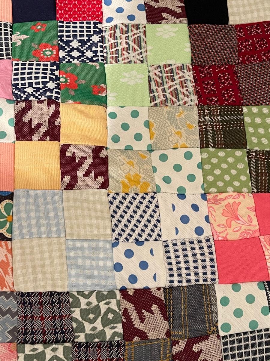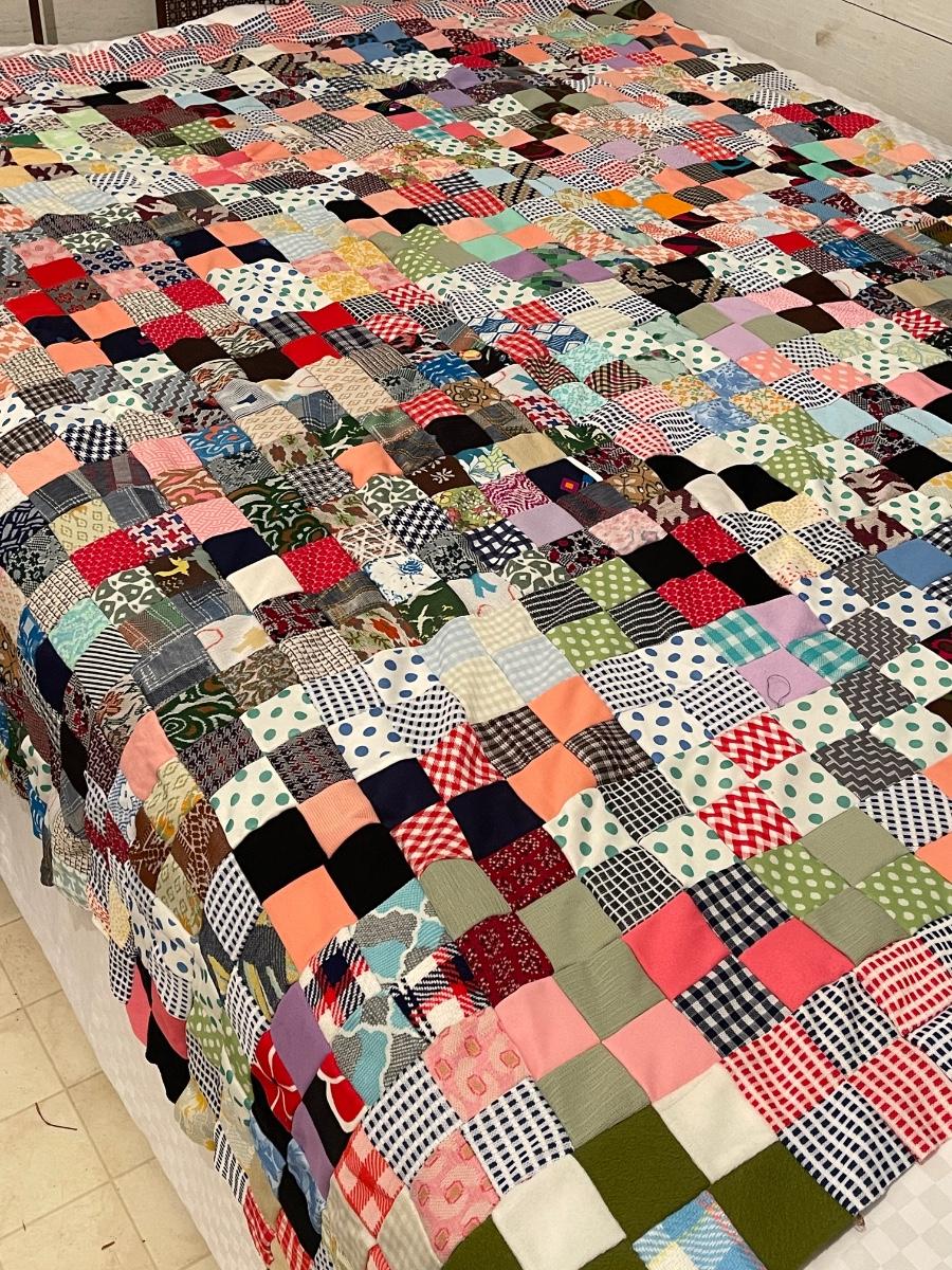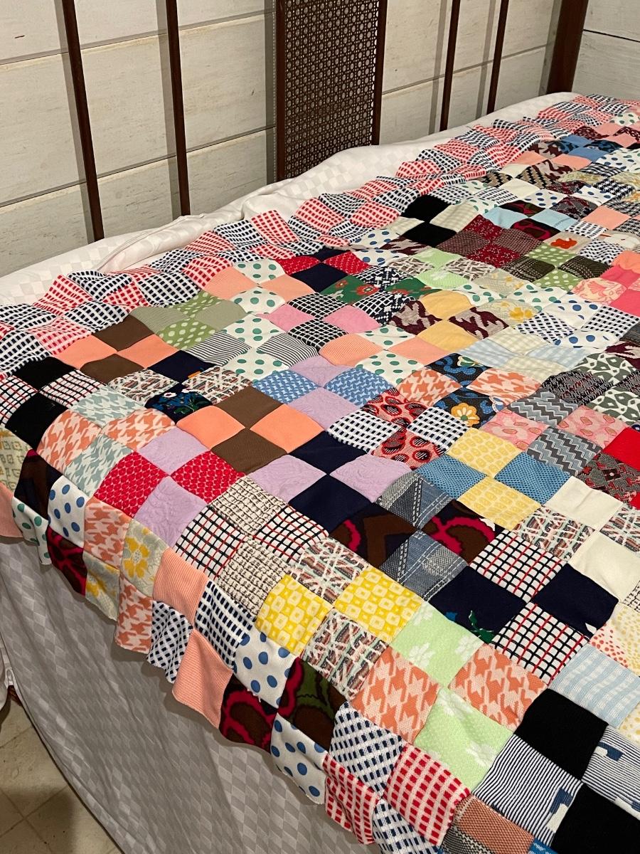 This is a beautiful quilt. Size can be seen on bed that it is a smaller quilt as it doesn’t quite cover the full bed. There is no backing on this quilt. Use as is for a pretty covering to a bed to add color or back it. Perfect weight for summer.