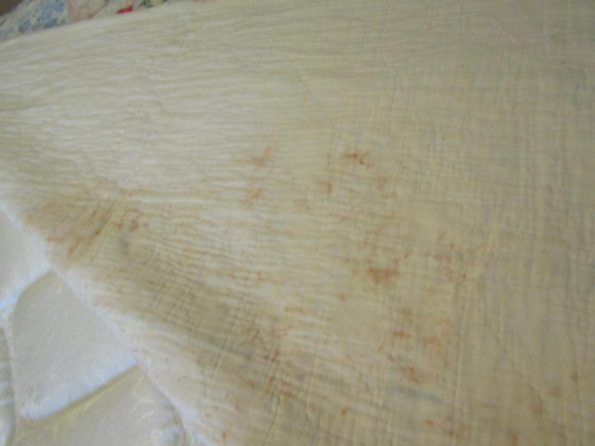 Handmade Quilt- Approx. 64" x 74". Please see all pictures- has light staining and needs cleaning.