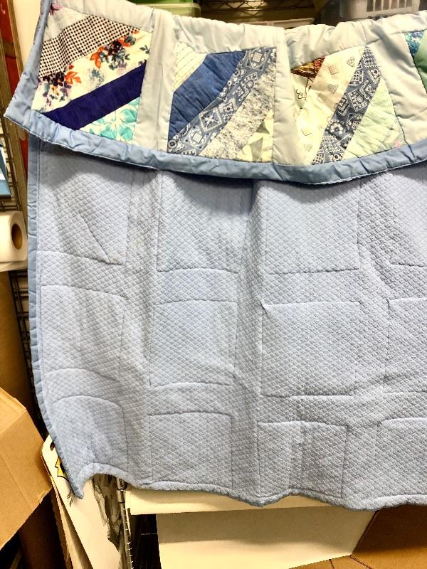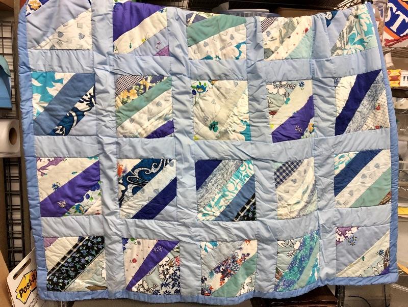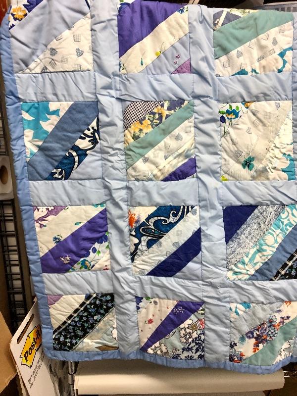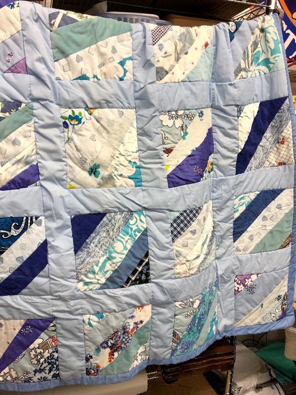 Handmade Quilt multicolored blues & purples 5 feet x 5 feet