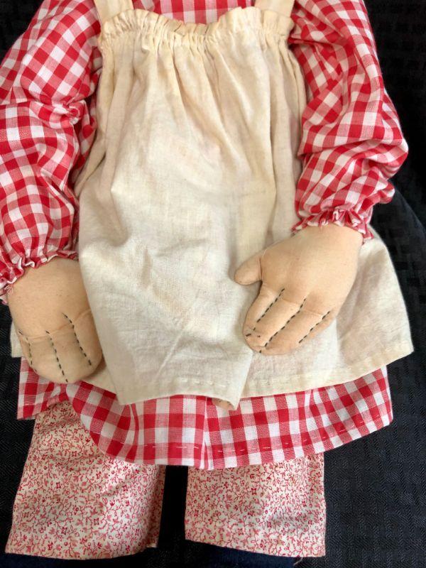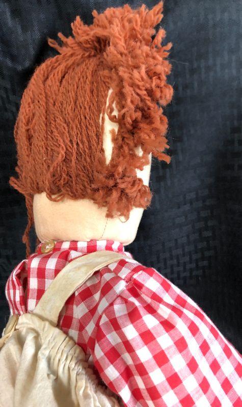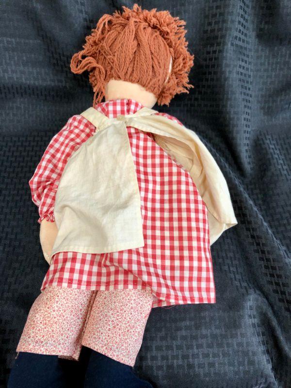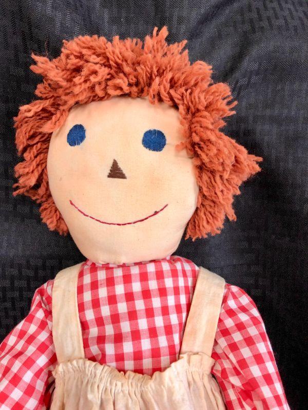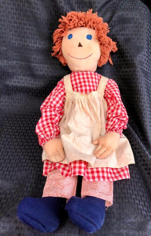 hand-made Raggedy Anne vintage rag doll, 26" long, stiched eyes and nose