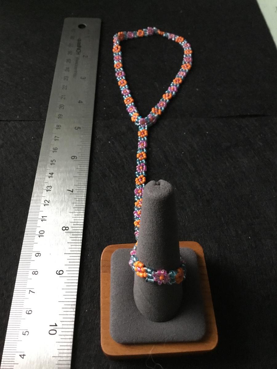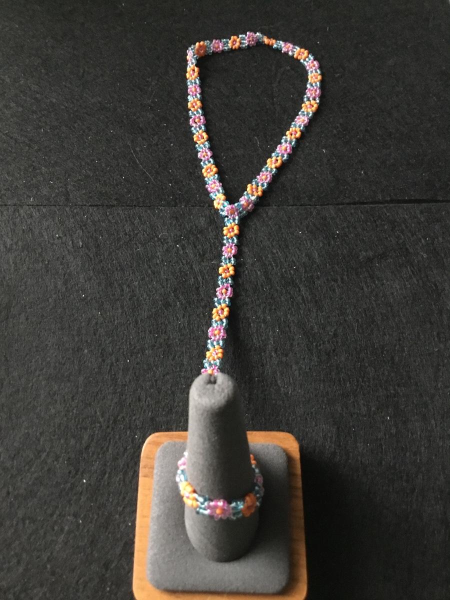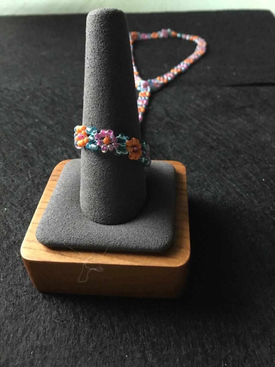 Handmade seed bead daisy chain bracelet and ring set in vibrant colors