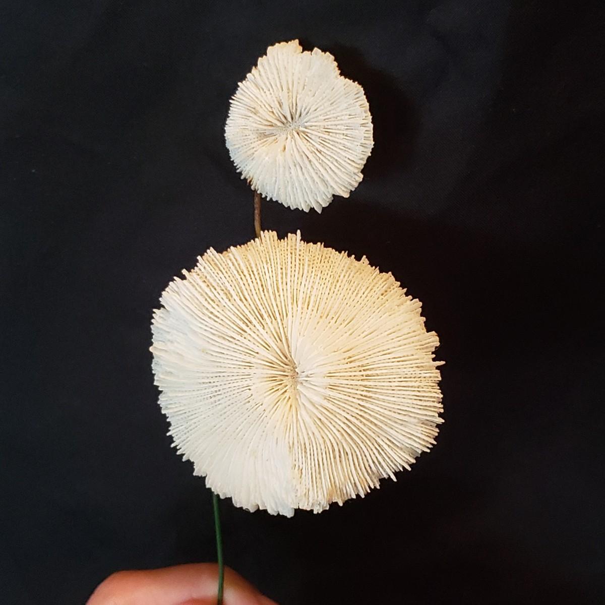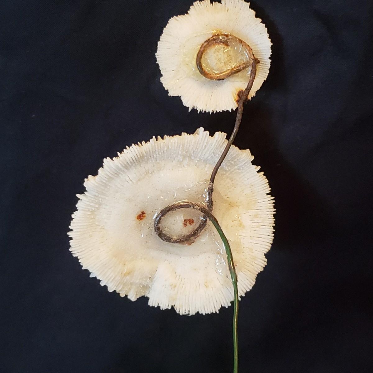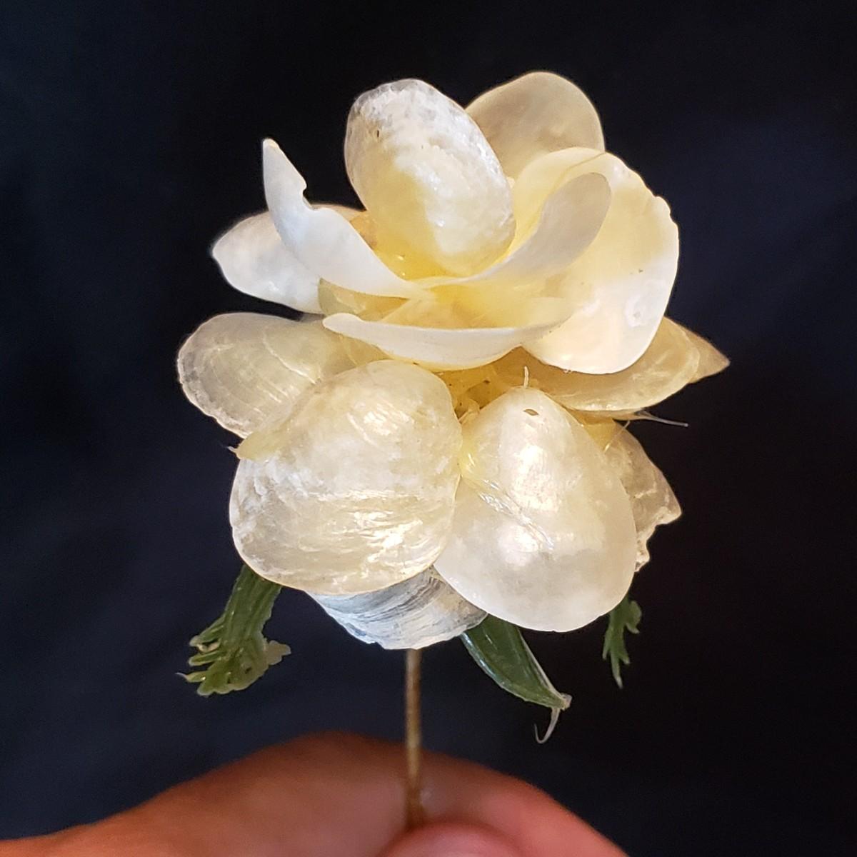 Beautiful handmade shell flowers! These hand crafted flowers are made out of various shells and green plastic leaves that are attached to a wire. Each stem measures approximately 3" x 10" H.