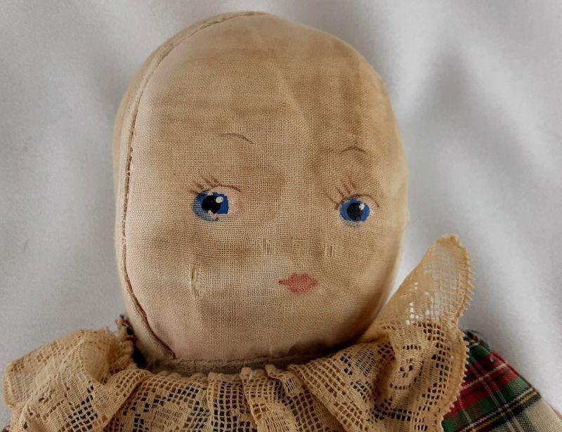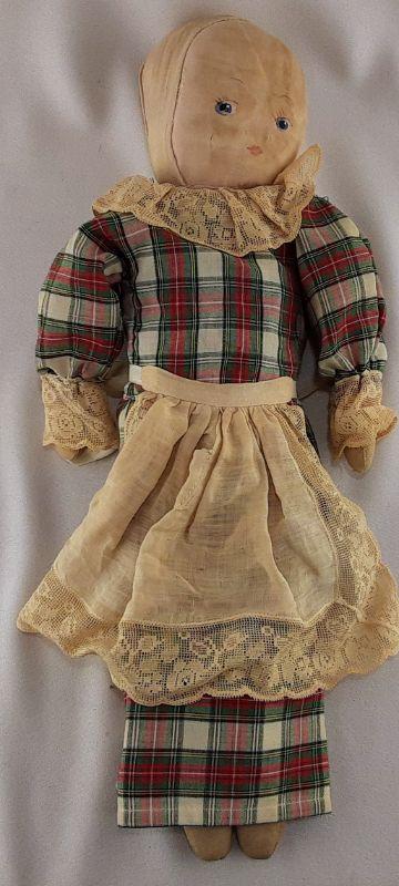 She measures 16in. tall. Notice her dress is the sleeve of a shirt.