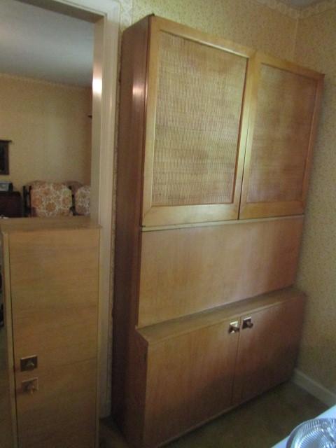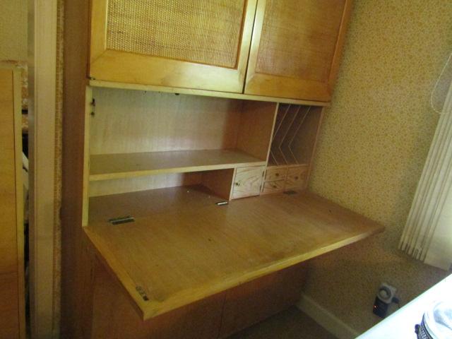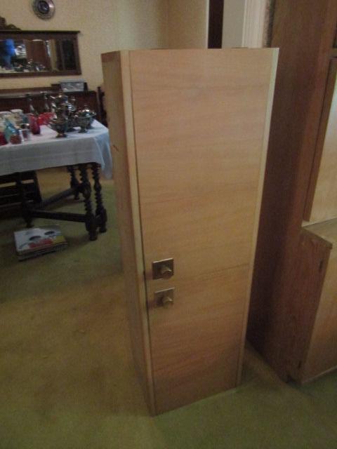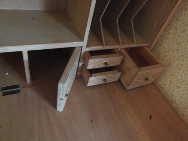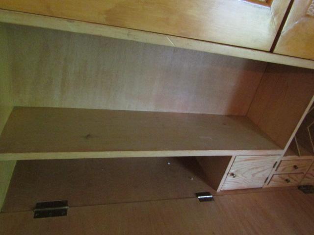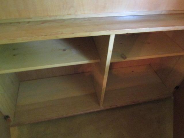 Handmade, Solid Wood Multi-Purpose Sectional Writing Desk and Book Cabinet. The additional top piece is shown on its side in the pictures. Unit is approx 45 1/2" wide, 14" deep. Height of main cabinet is approx 78 1/4". Additional top piece would add 14 1/2" to height if used. Please see all pictures.