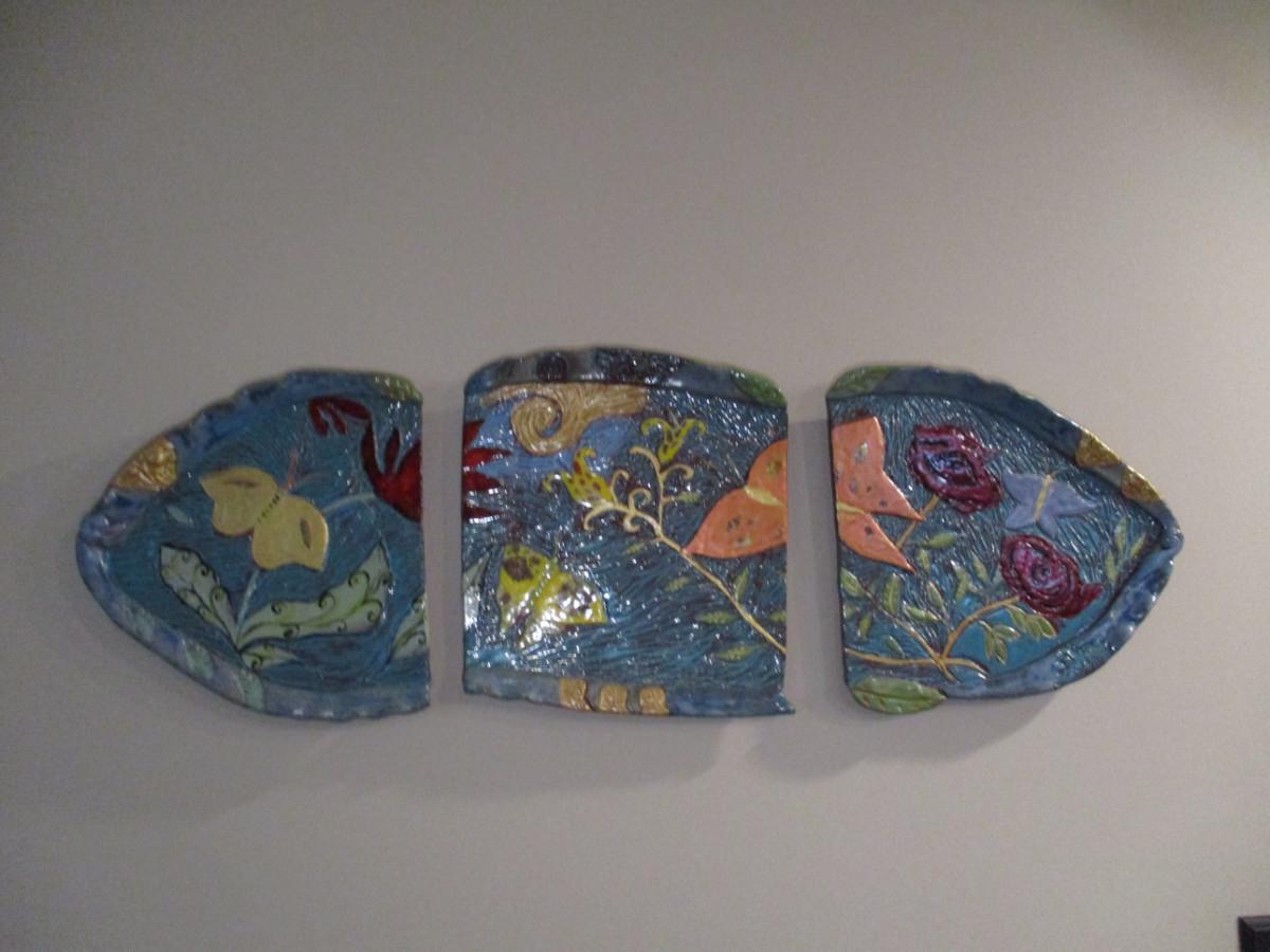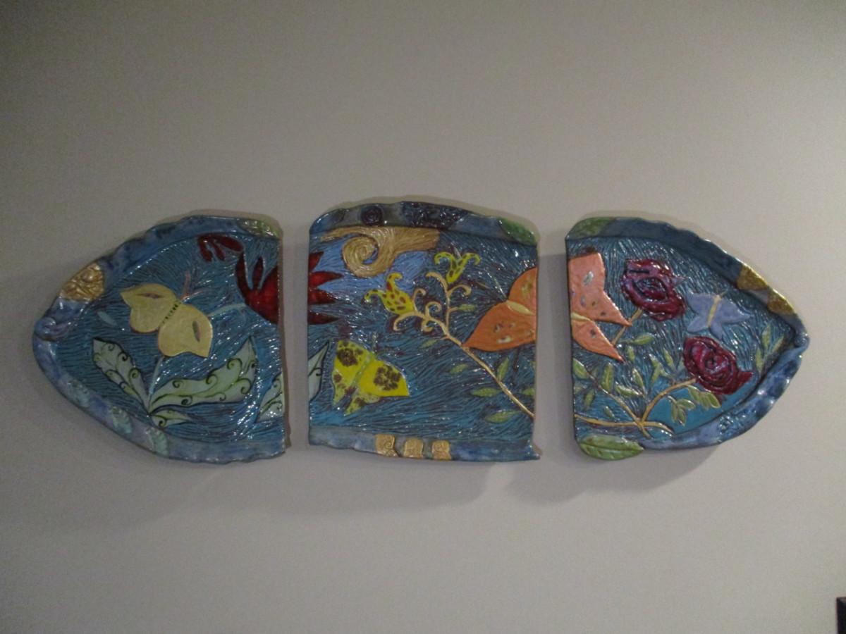 Handmade Three Piece Pottery Wall Art- Butterflies