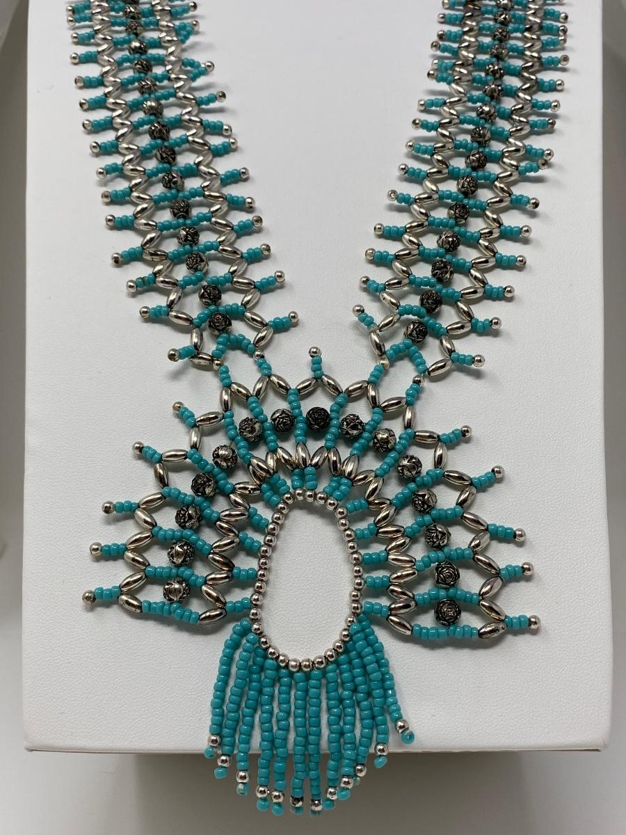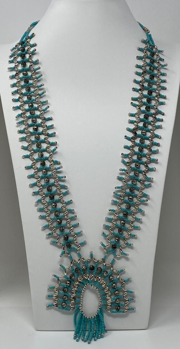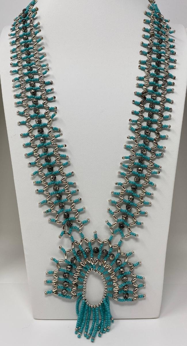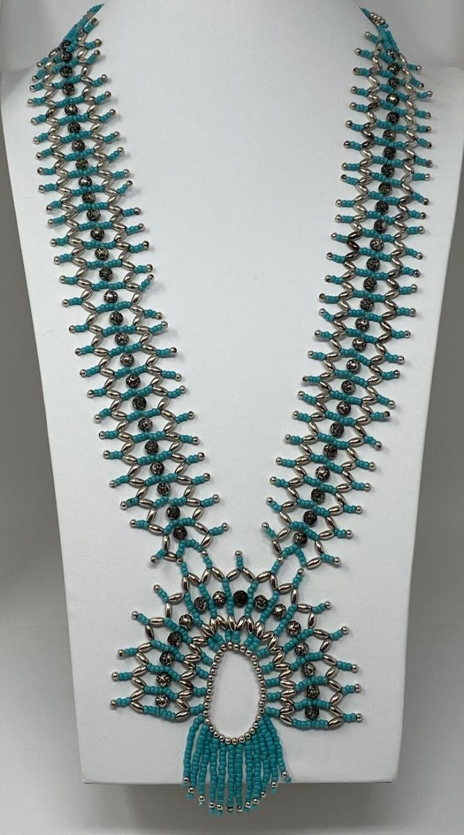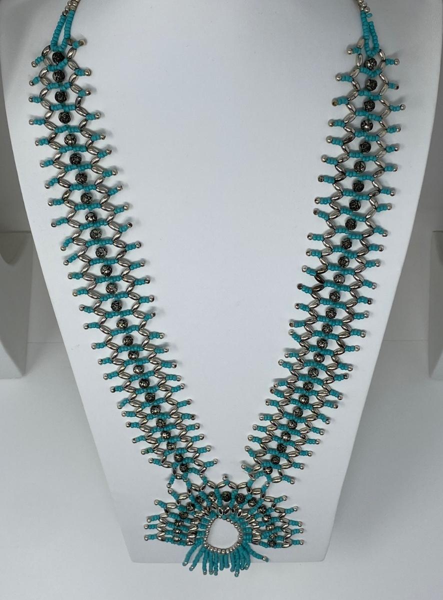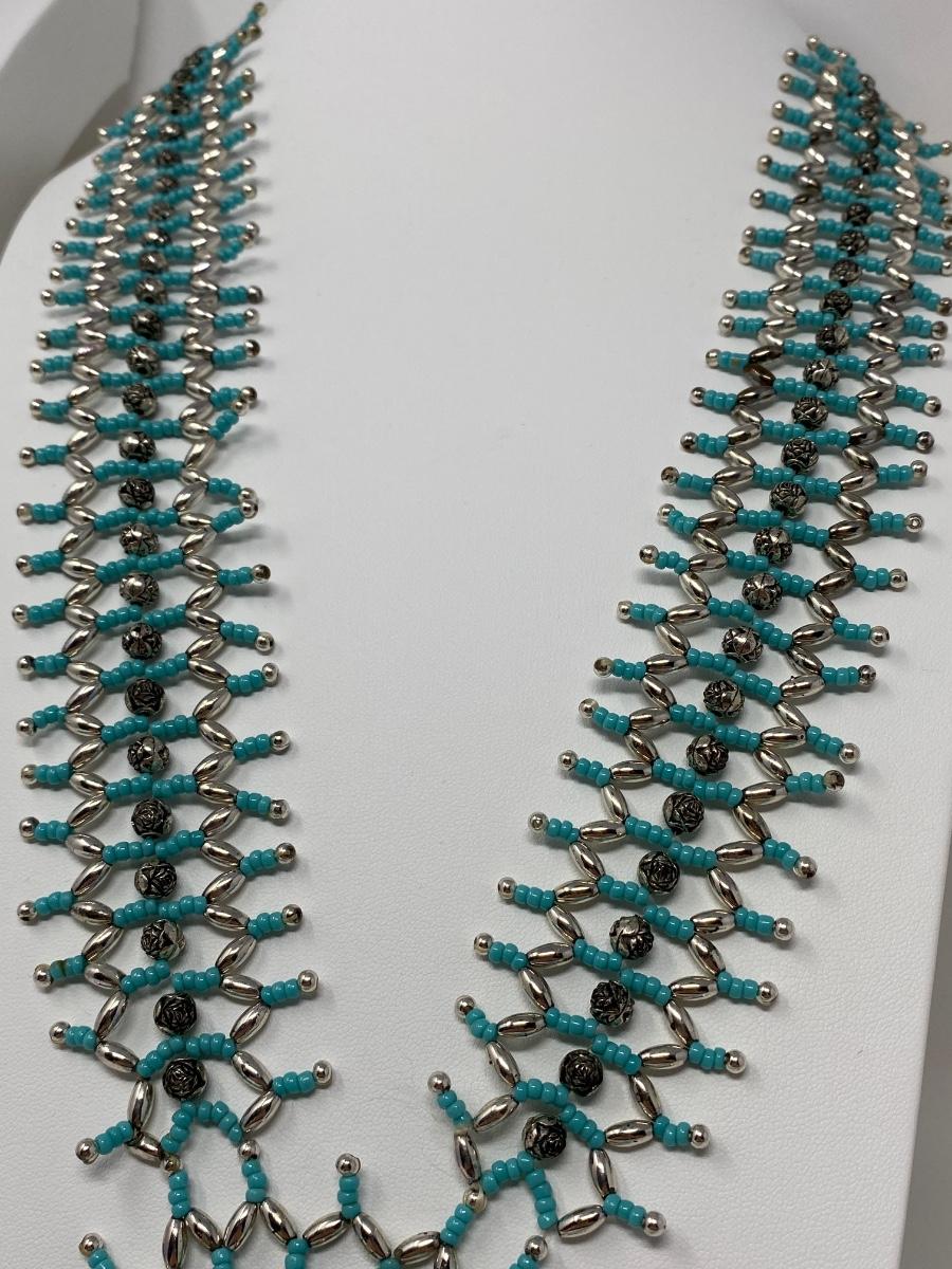Hand-Made Turquoise Microbead and Silver Beaded Necklace