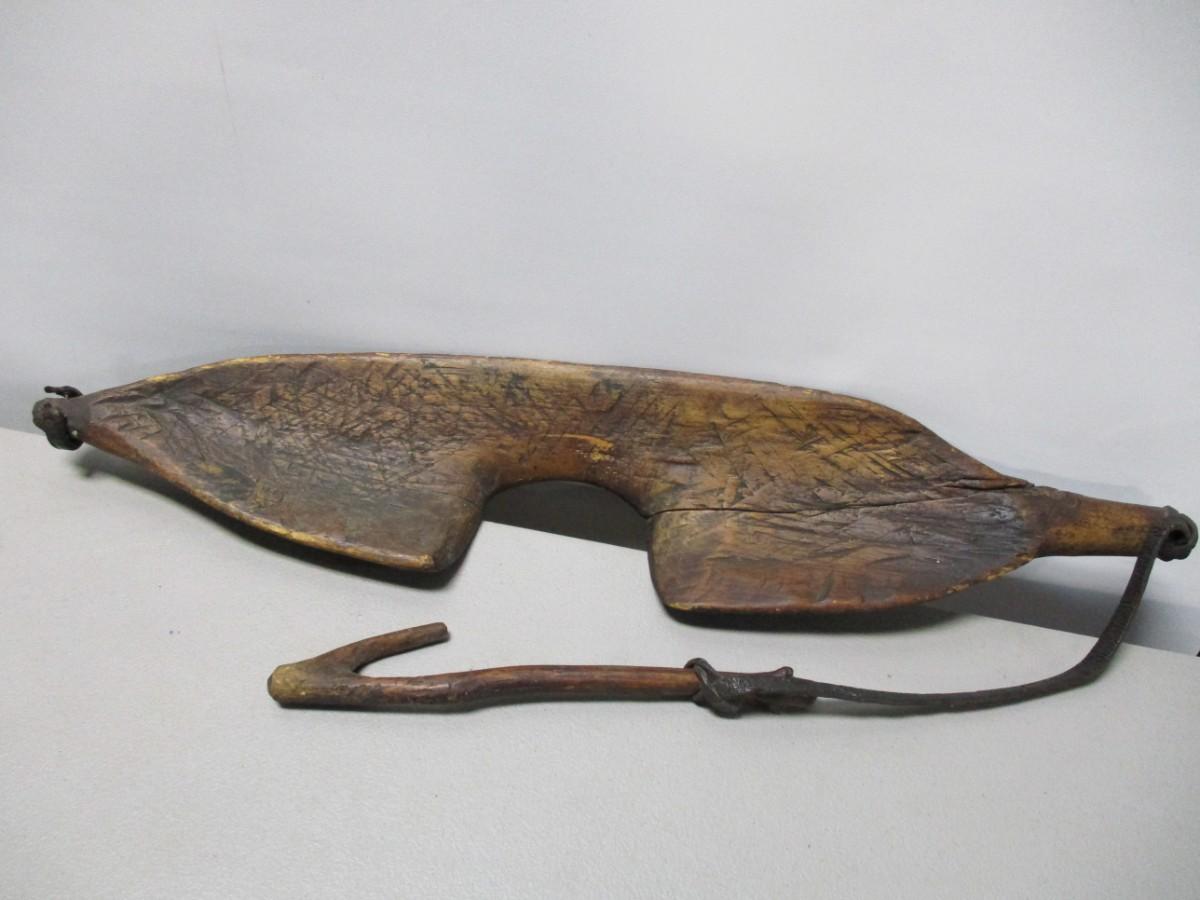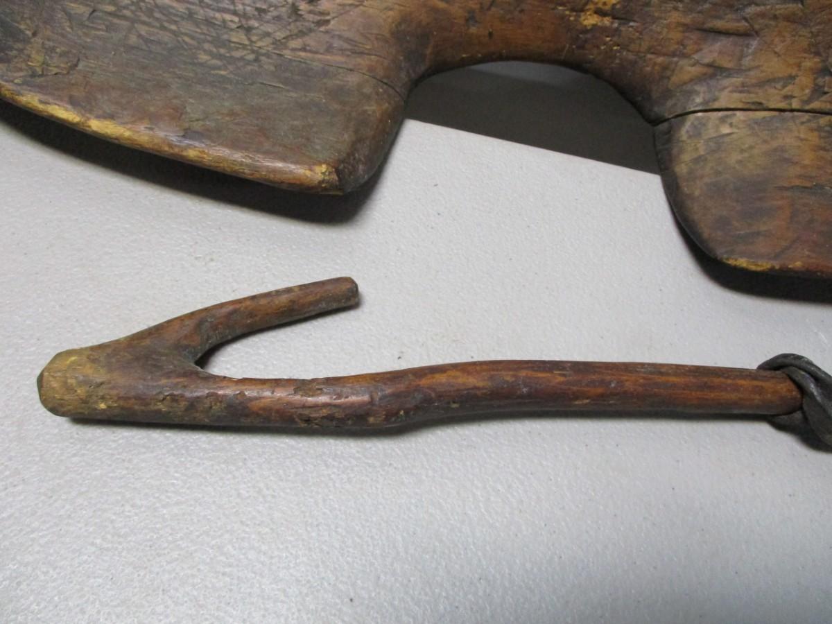 Early Carved Vermont Maple Sap Yoke with Rare Carved Wood Hook