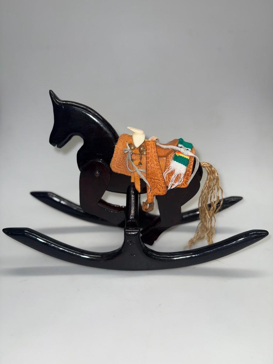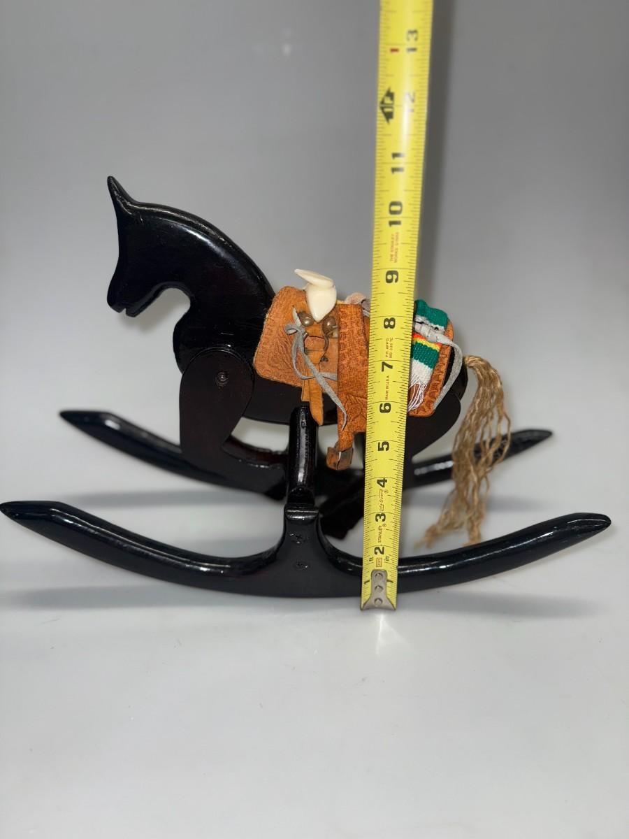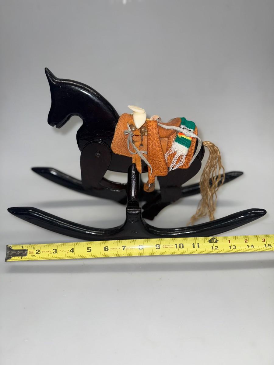 Handmade Wood Black Horse That Rocks “Clip/Clop” with Saddle