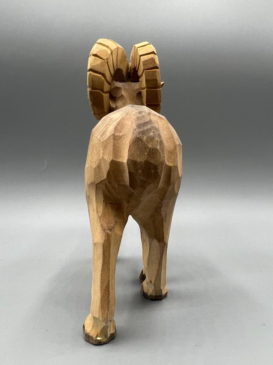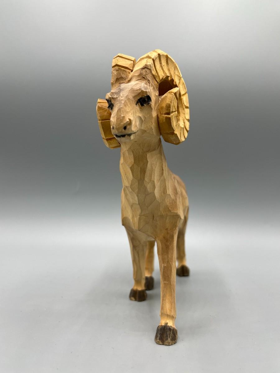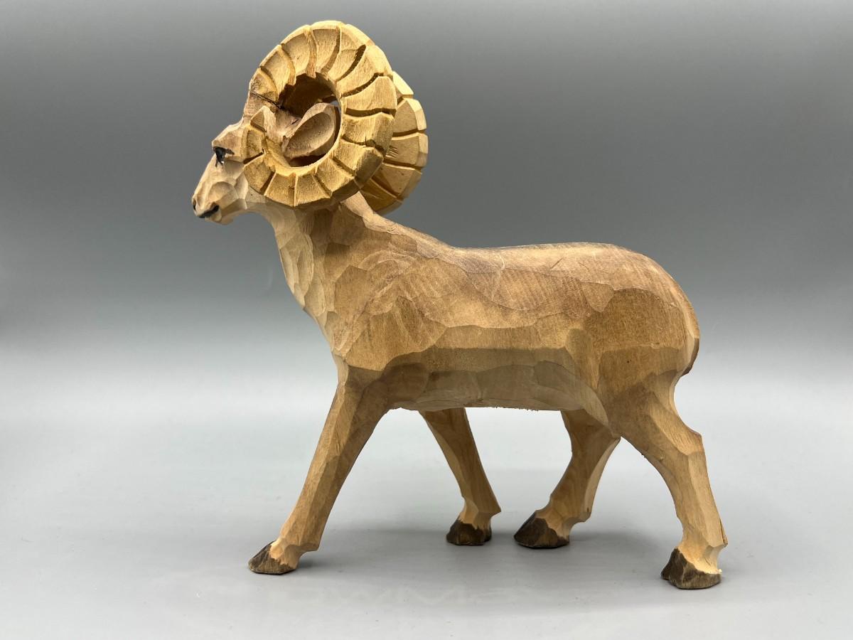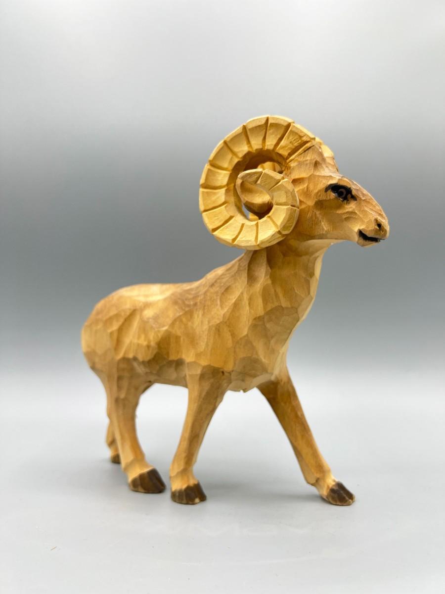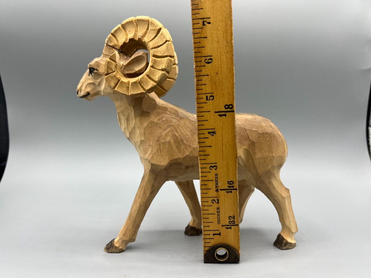 Handmade Wood Carved Ram, there is no significant damage to the ram and is in good displayable condition. Check pictures for more details and for sizing.