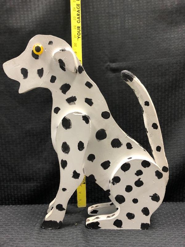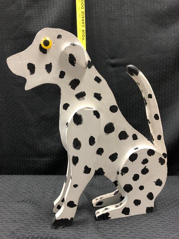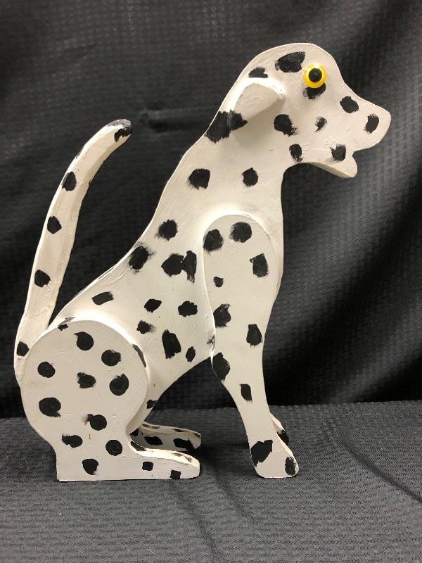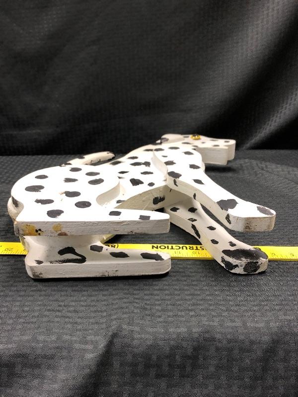 Handmade wood Dalmatian dog statue.
