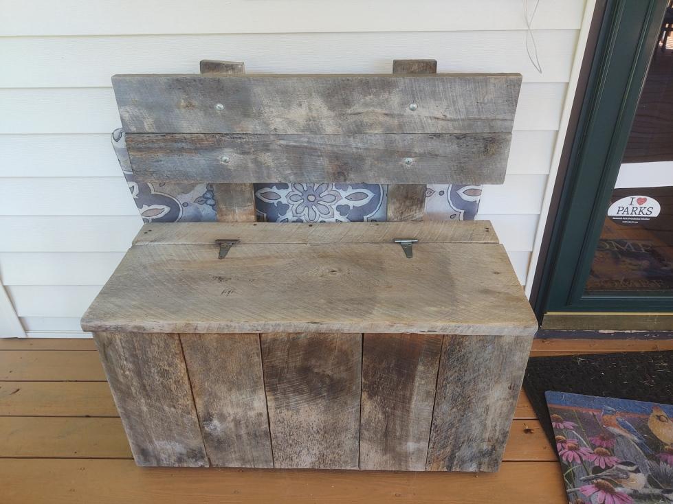 Bench has a storage compartment below the seat. Measures 37"x18"x37"
