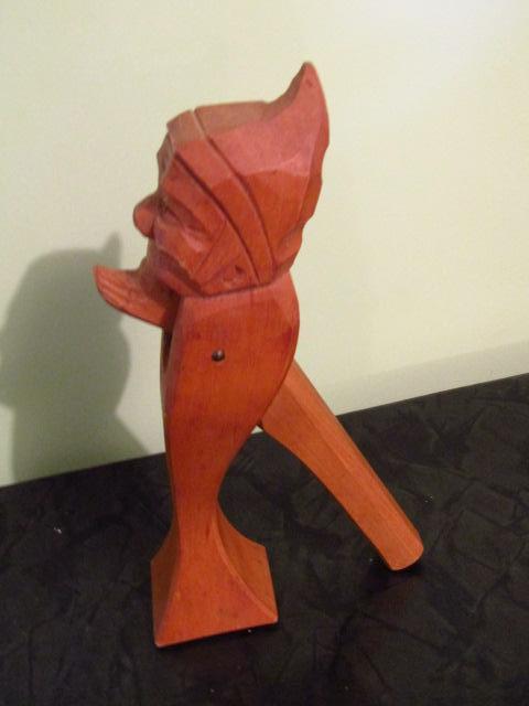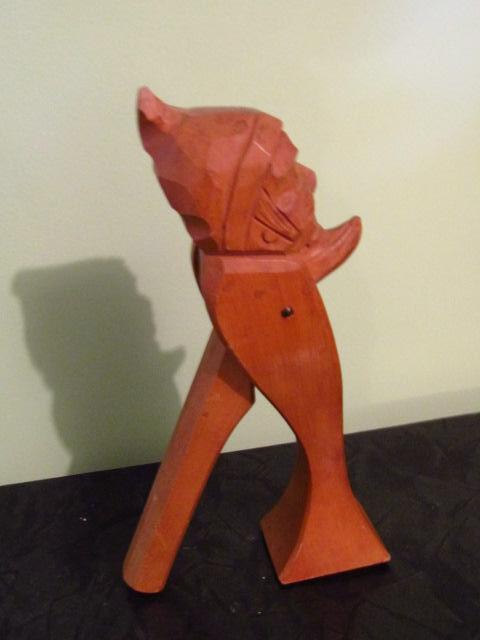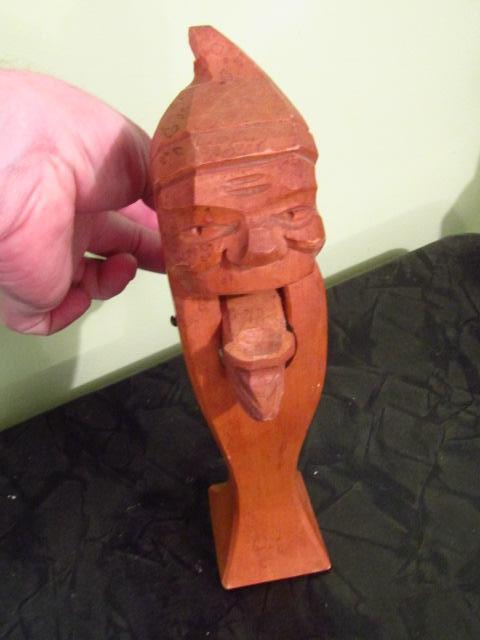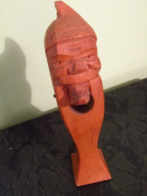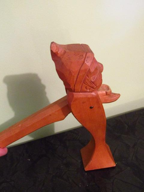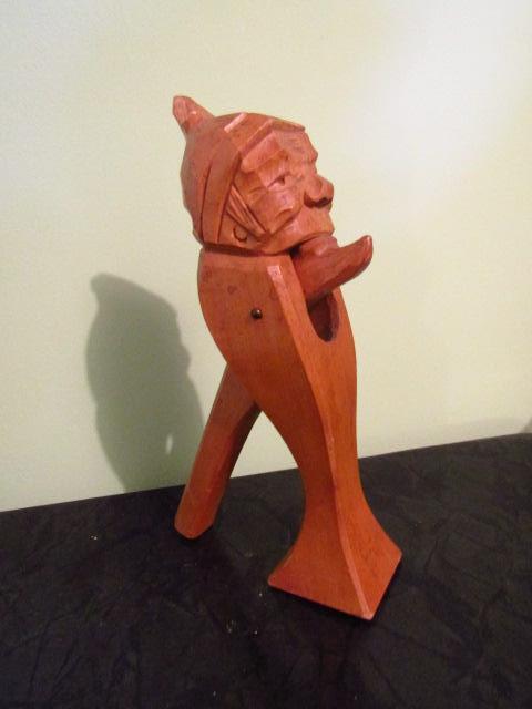 Handmade Wooden Nut Cracker. Top of hat has some detail broken off- please see all pictures.