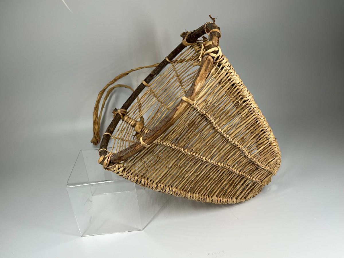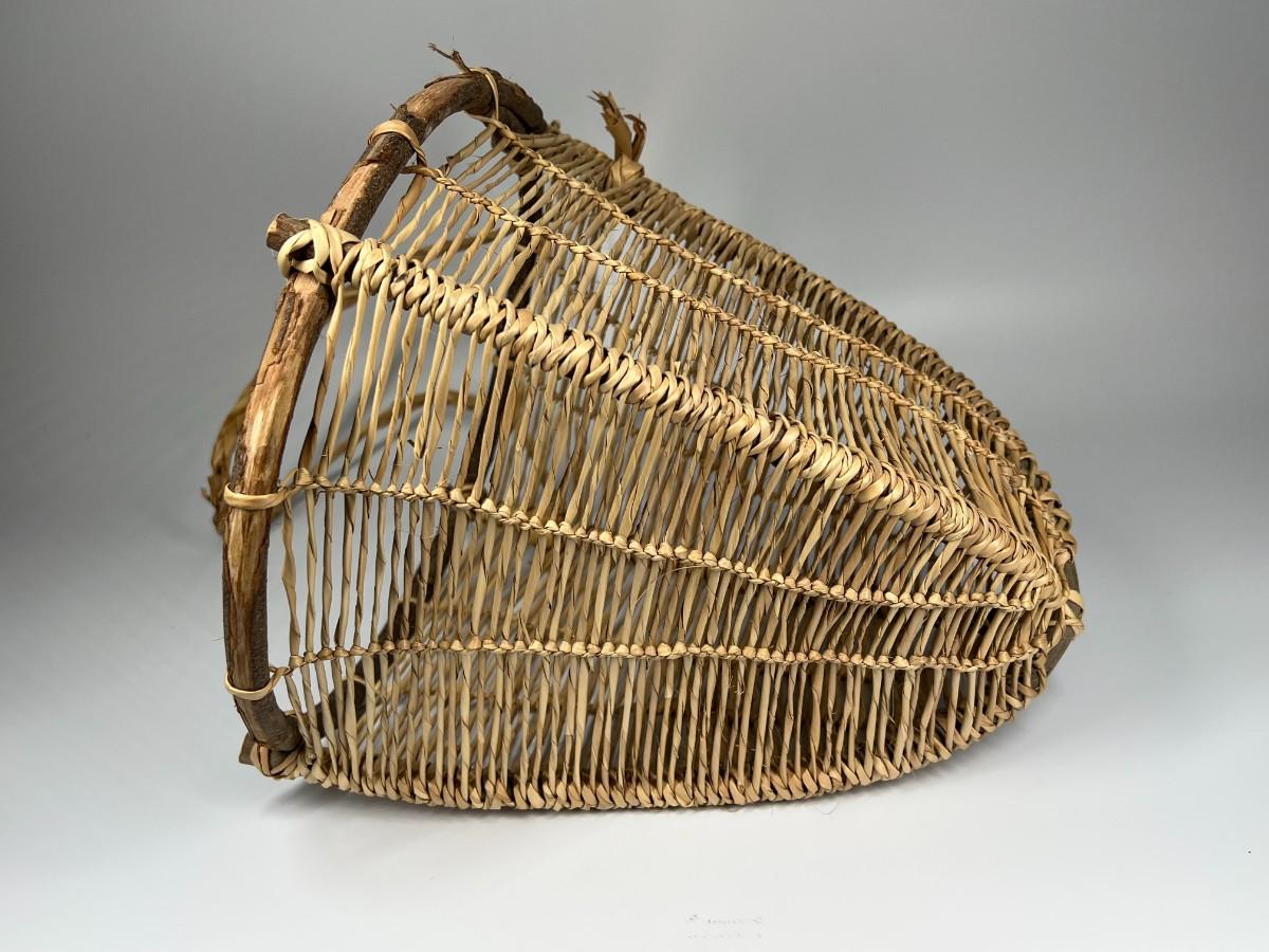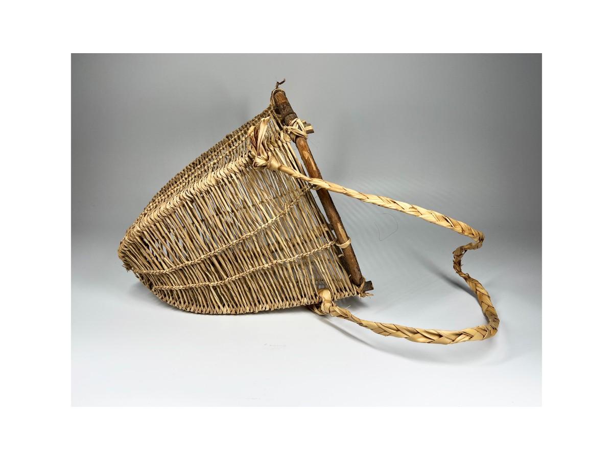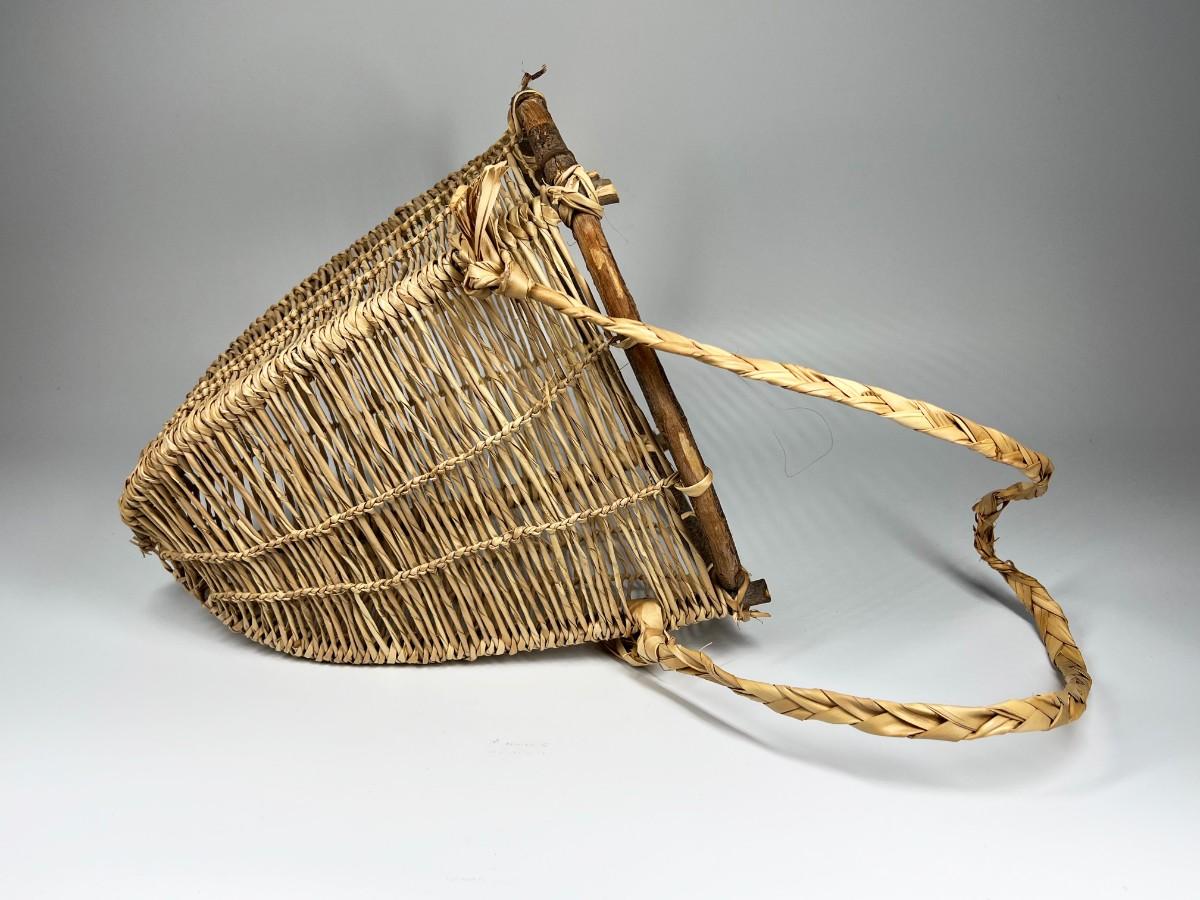 Handmade Wooden & Weaved Wicker Carrying Gatherer Basket, the strap has some tears and there is minor wear to the basket, but there is no signifncant damage and is in good displayable condition. Check pictures for more details and for sizing.
