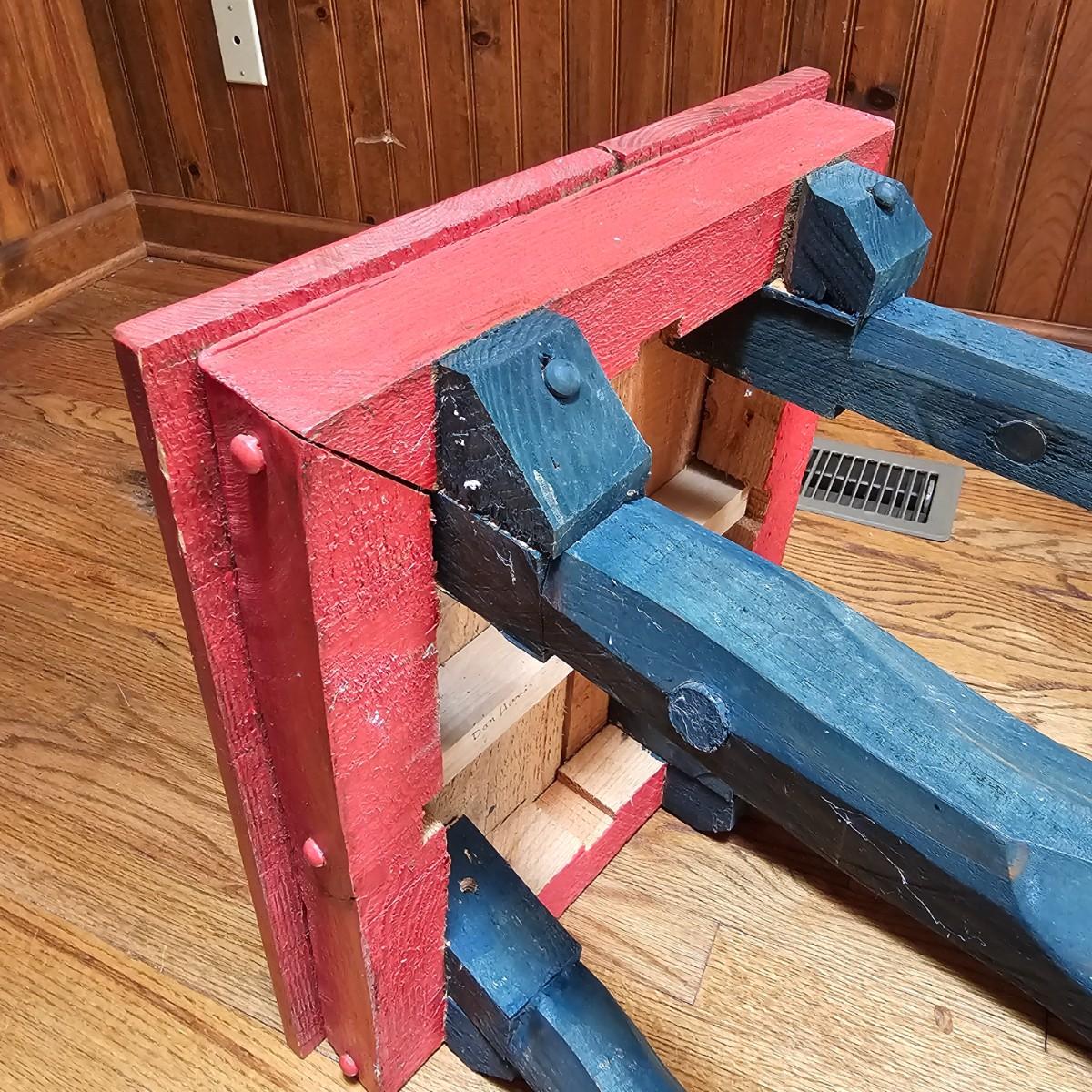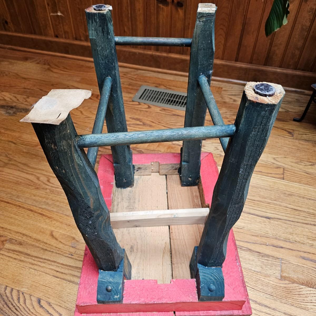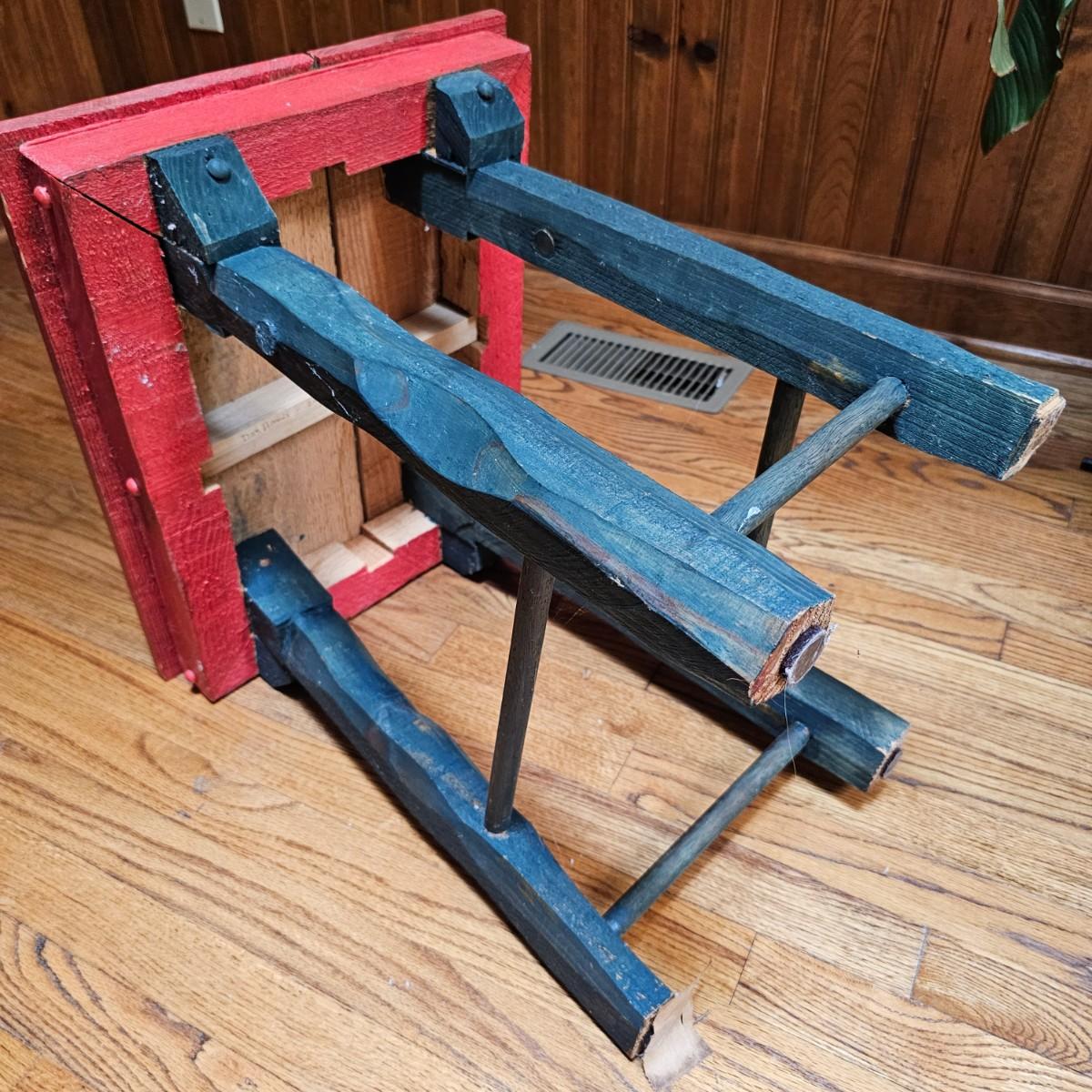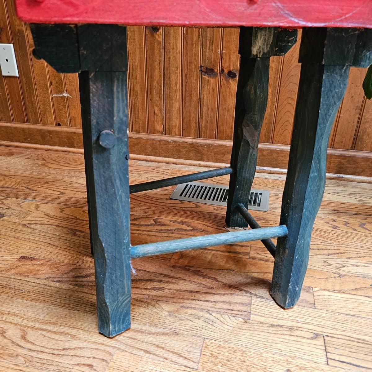 Rustic handmade wood table depicting a leaping trout and a fly rod. Various river names are placed around the edges of the table. Measures 19" x 16" x 21"H, signed by Don Harris and dated 2004. See photos for details. Local pickup only.