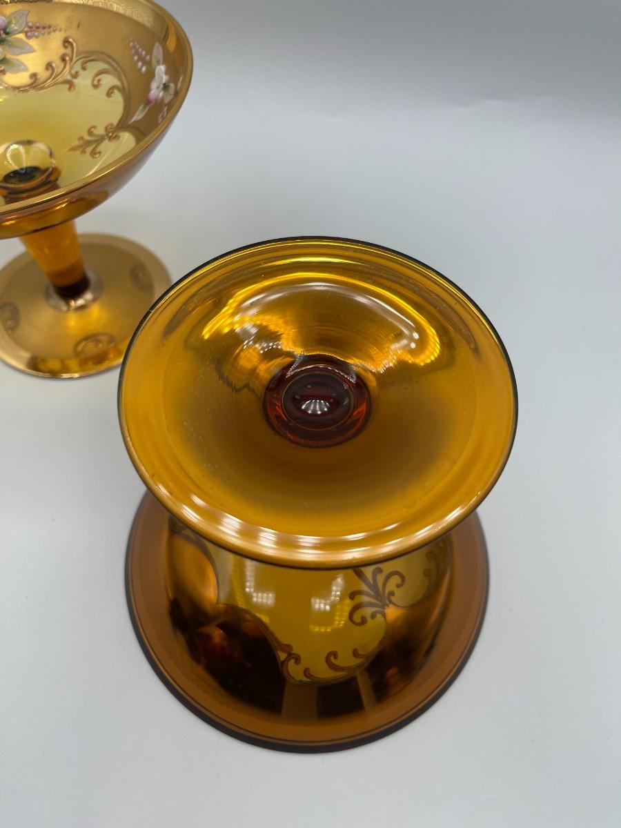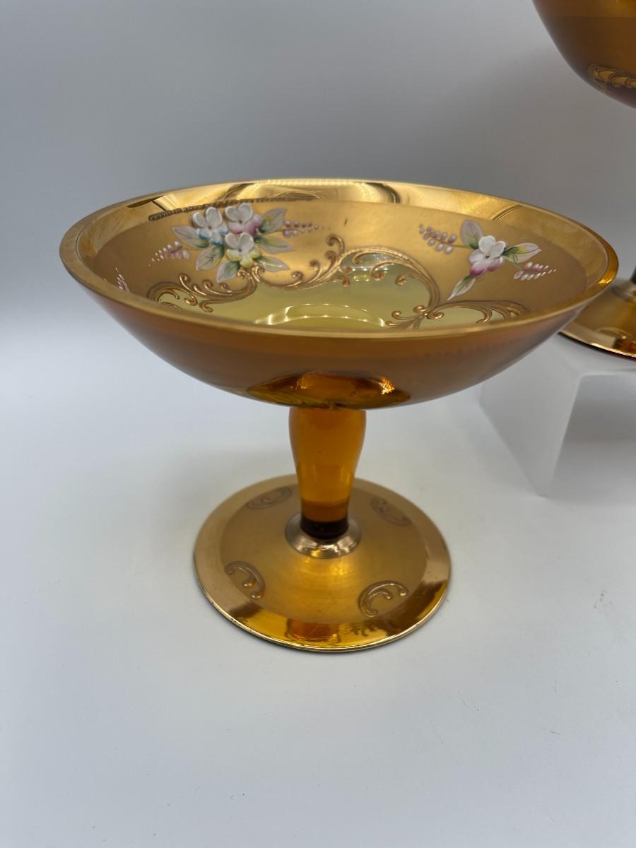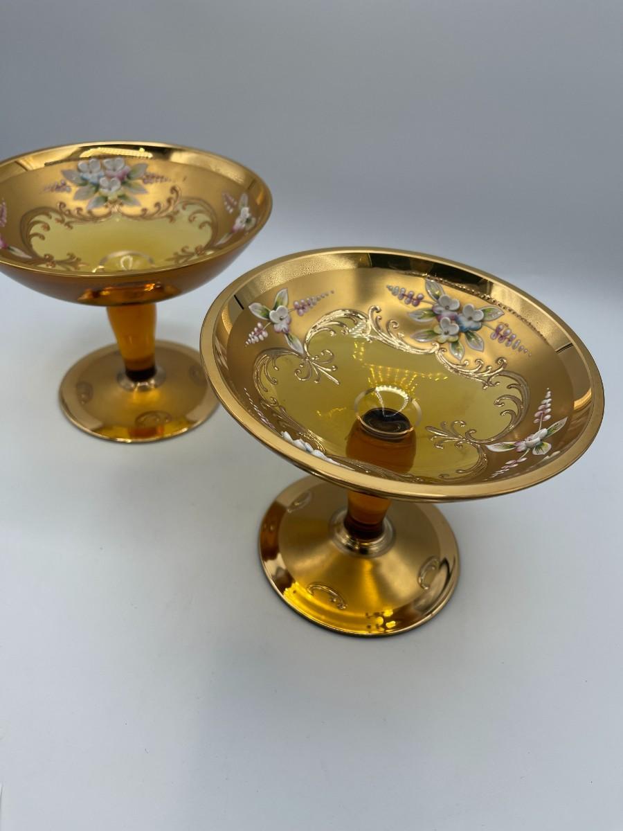 Hand-painted Bohemian Art Glass Compotes, a Pair
