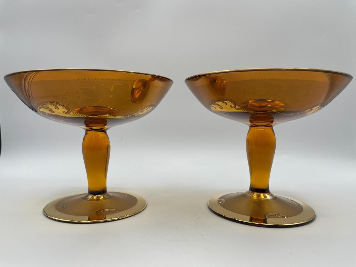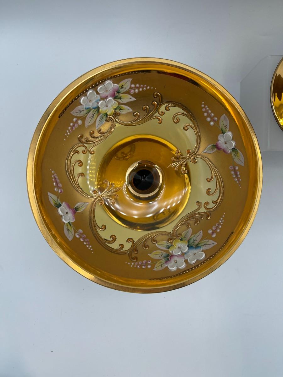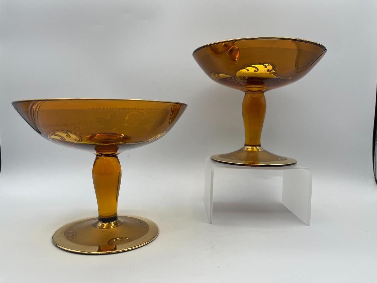 Hand-painted Bohemian Art Glass Compotes, a Pair