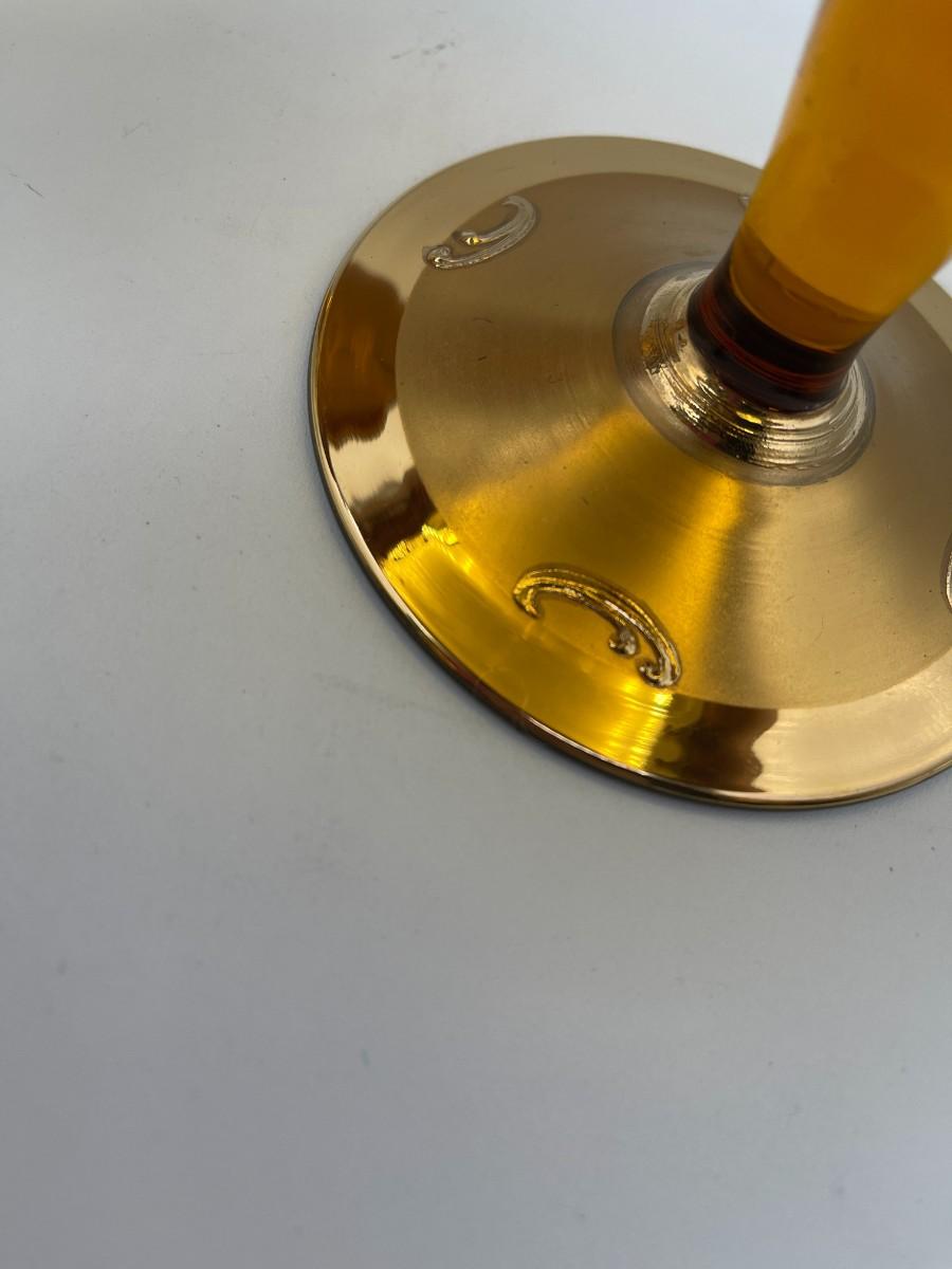 <p>The lines are simple, reminiscent of 1950s champagne coupes or Antoinette glasses. However, the painting inside the compote bowl is traditional, floral, & Bohemian. 6" W at mouth x 5" H </p> # 742